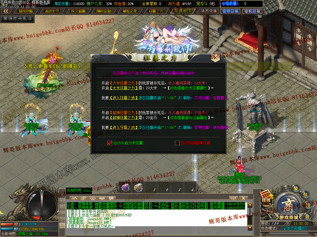 2:冠名大哥68元大米(永久共享第一)【技能·全屏吸怪 爆率+1000% + 自动挂机 + 最大HP+20% + 最大攻魔道+10% + 倍攻20% + 伤害减少10%