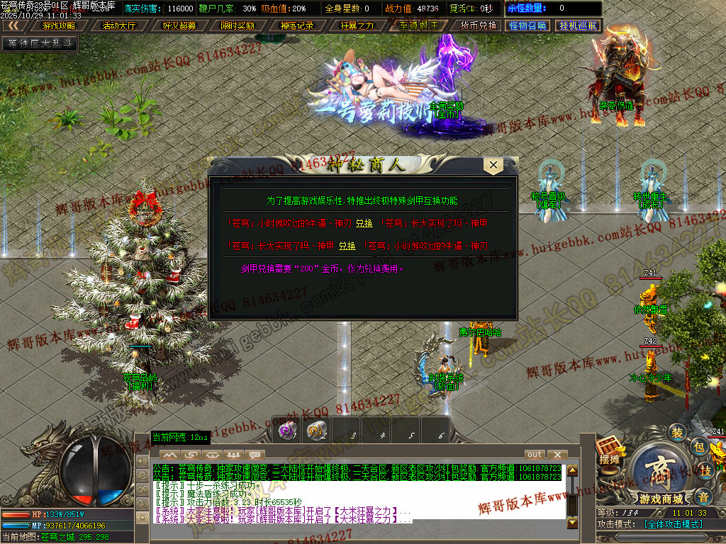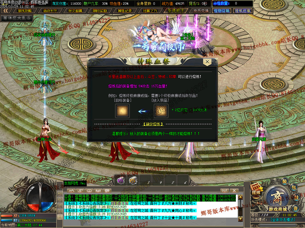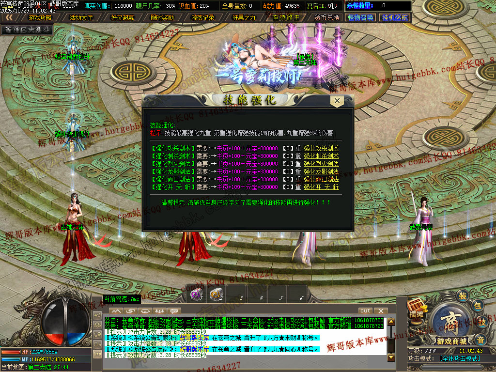 1.上线领取群礼包,人物防麻痹.特殊4件套.全屏自动检物功能.开天斩.逐日剑法.施毒术.杀怪爆率加100%,人物三转