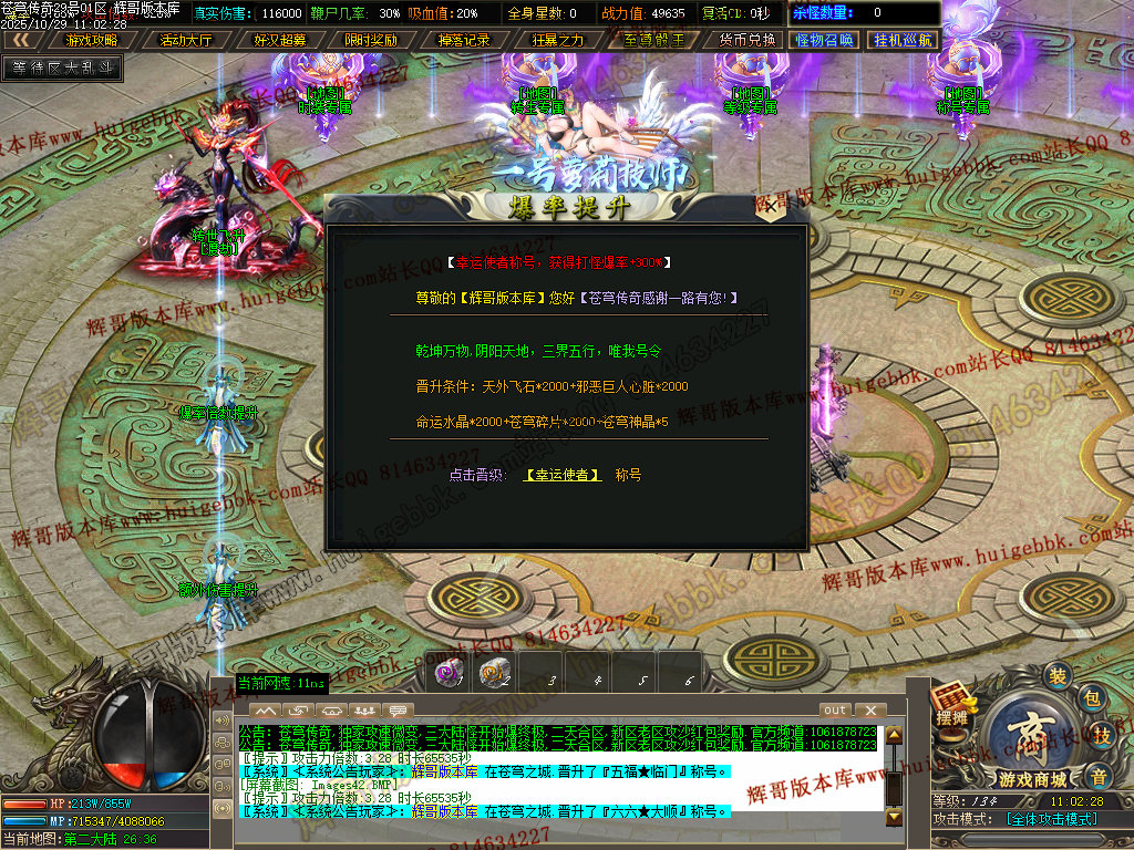 11、1-7大陆的每一个NPC建议玩家都点开看一下,基本就懂了,游戏就是简单粗暴的玩法,打怪做号,没有花里胡哨,一切靠打!