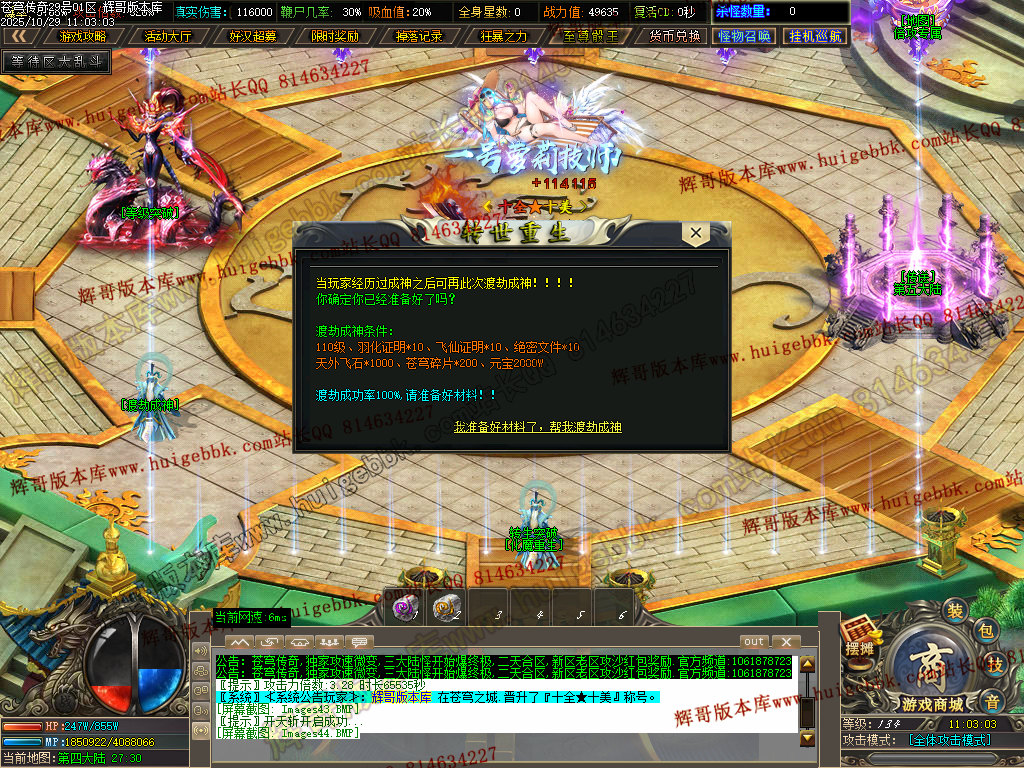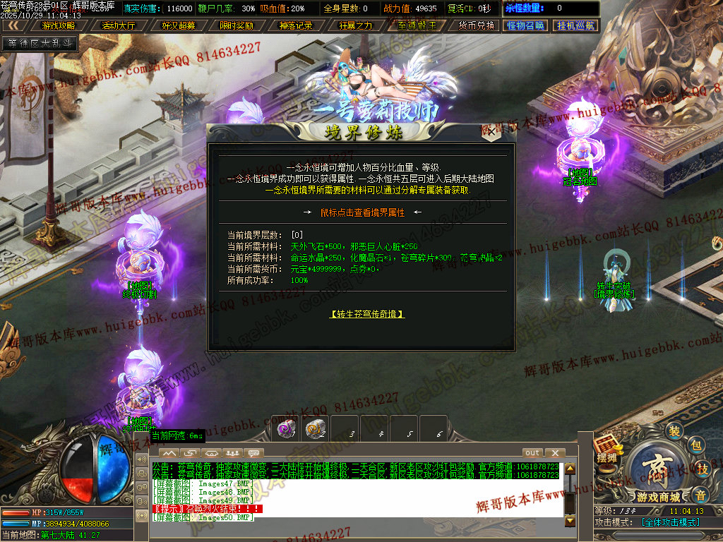 03、人物等级提升是通过 (50级到110级需要经验卷升级(回收装备也加经验)之后等级需要相对应的飞升等级丹,详情看NPC面板!