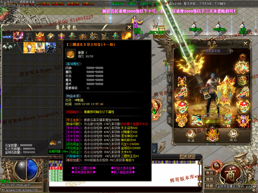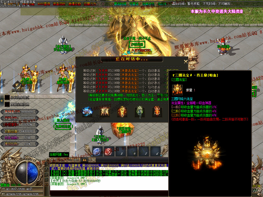 背包神器地图击败里面怪物,出背包神器,刀刀红名+几率斩杀500亿血量+倍攻20+装备掉率50万,