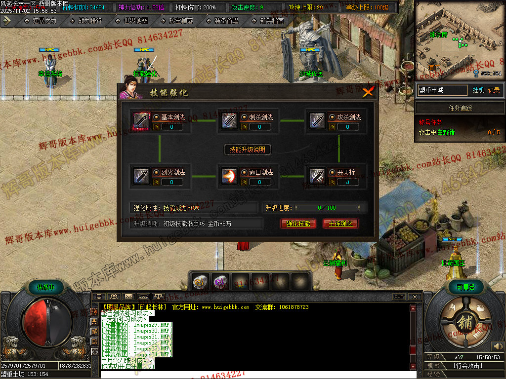杀猫逐鹿出新村 斩妖除魔入盟重 近观绿涛汇碧海 远眺青山有苍松