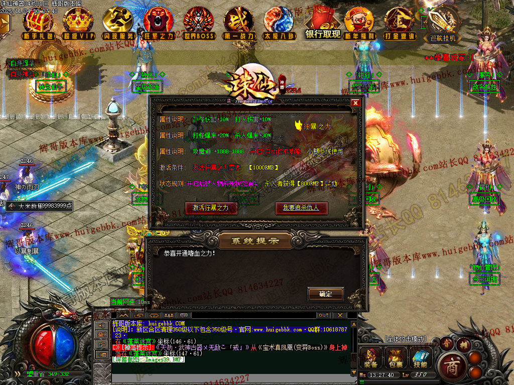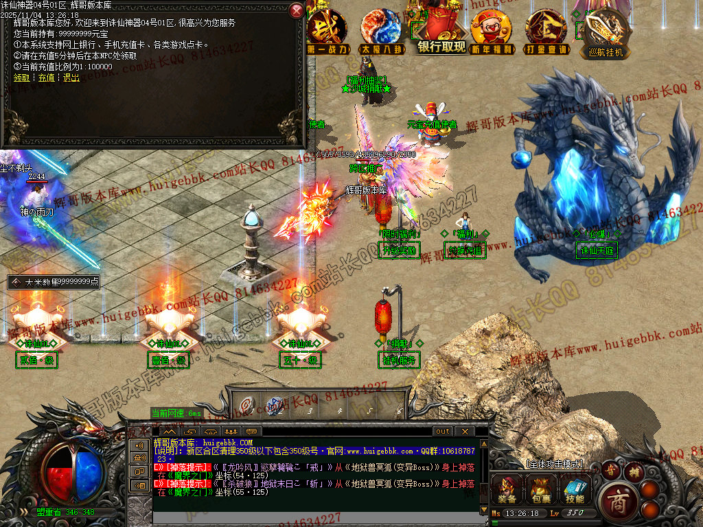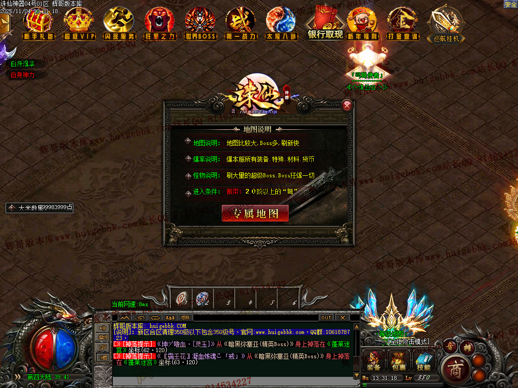 增加的东西也挺多的 循环挂机 银行系统 推广系统 精准控制暴率以及修改各种地图的方式
