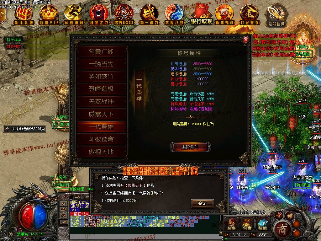 称号14级: 需要 400万元宝 + 14000点卷 (有专属地图)