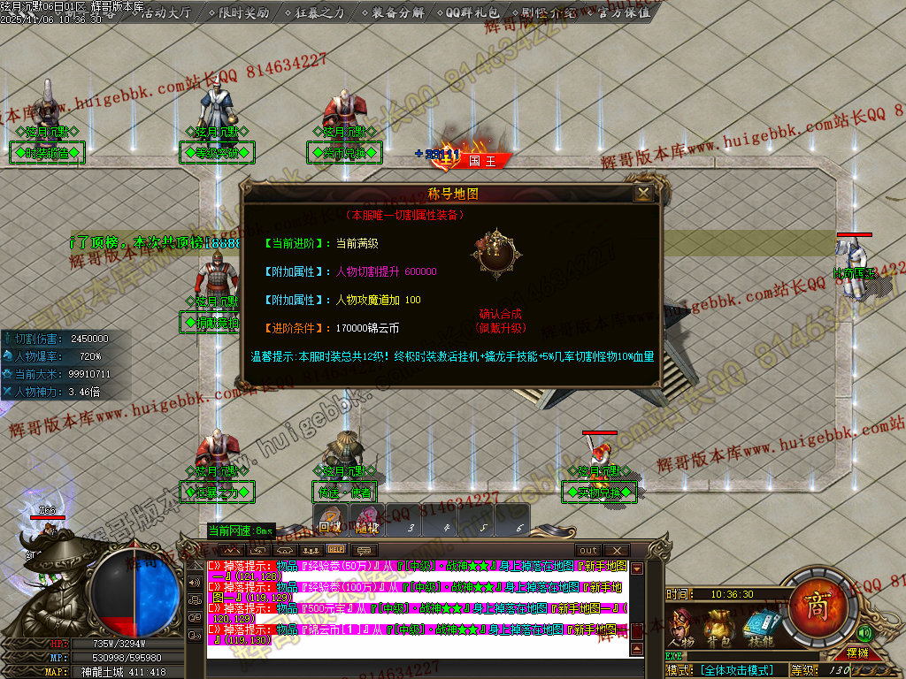 6:快速升级方式(二大陆装备分解NPC获得锦云金印或打必爆怪爆出,快速突破等级。125级下三大陆,安全区一个必爆次终极剑甲BOSS先到先得)