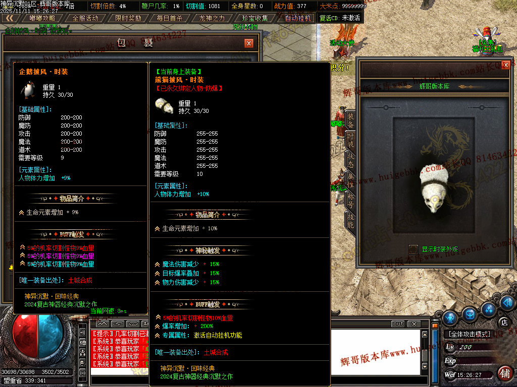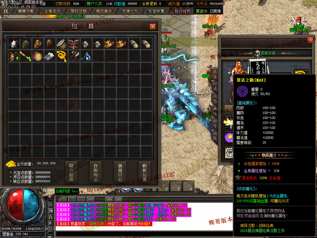 [BOSS相关爆率]:十倍BOSS必爆:100%掉天藏宝箱·(普通)■80%掉(精良)+(完美)■60%掉(古迹)+(神话)■40%掉(终极)