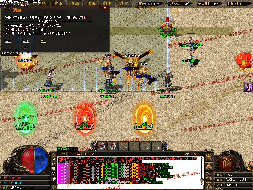 ★怪物 攻城★每天20:00-20:50封魔谷开启,共11波怪物,一波比一波强悍,打金必参加活动,必抢!