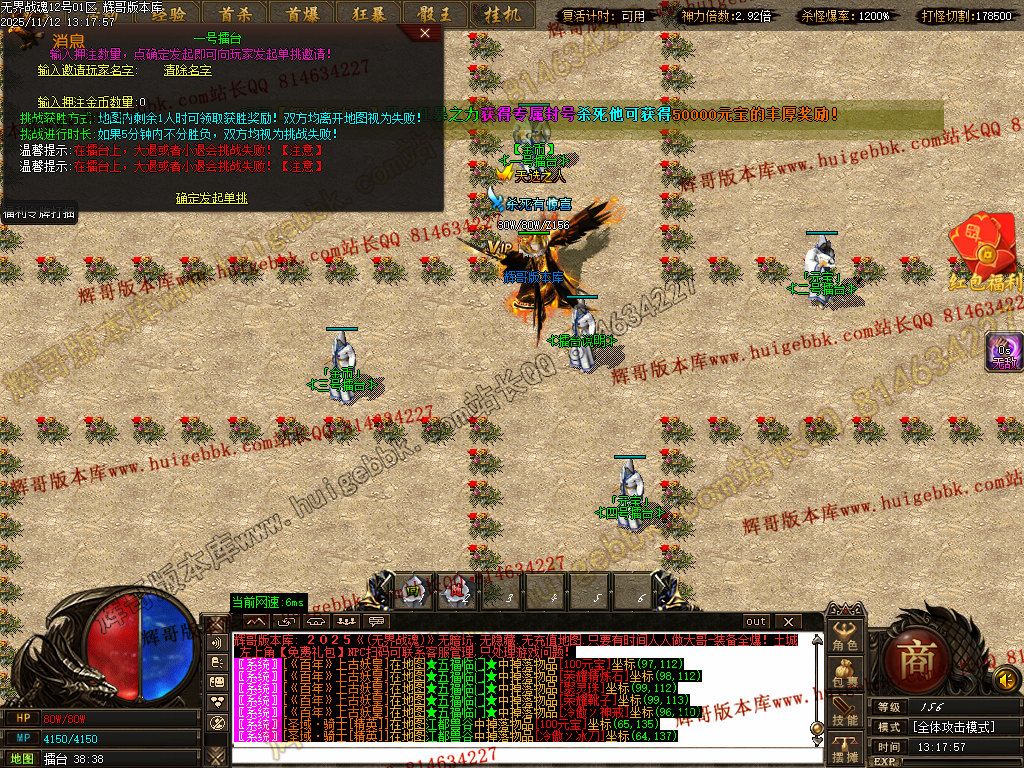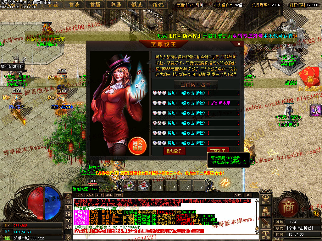 ★喜迎新春★重点活动,必参加。活动开启,地图圆盘处刷新一只BOSS,打死必爆1000金币,几率出15转剑甲和其他装备。刷新10只小怪,必爆金币和装备。