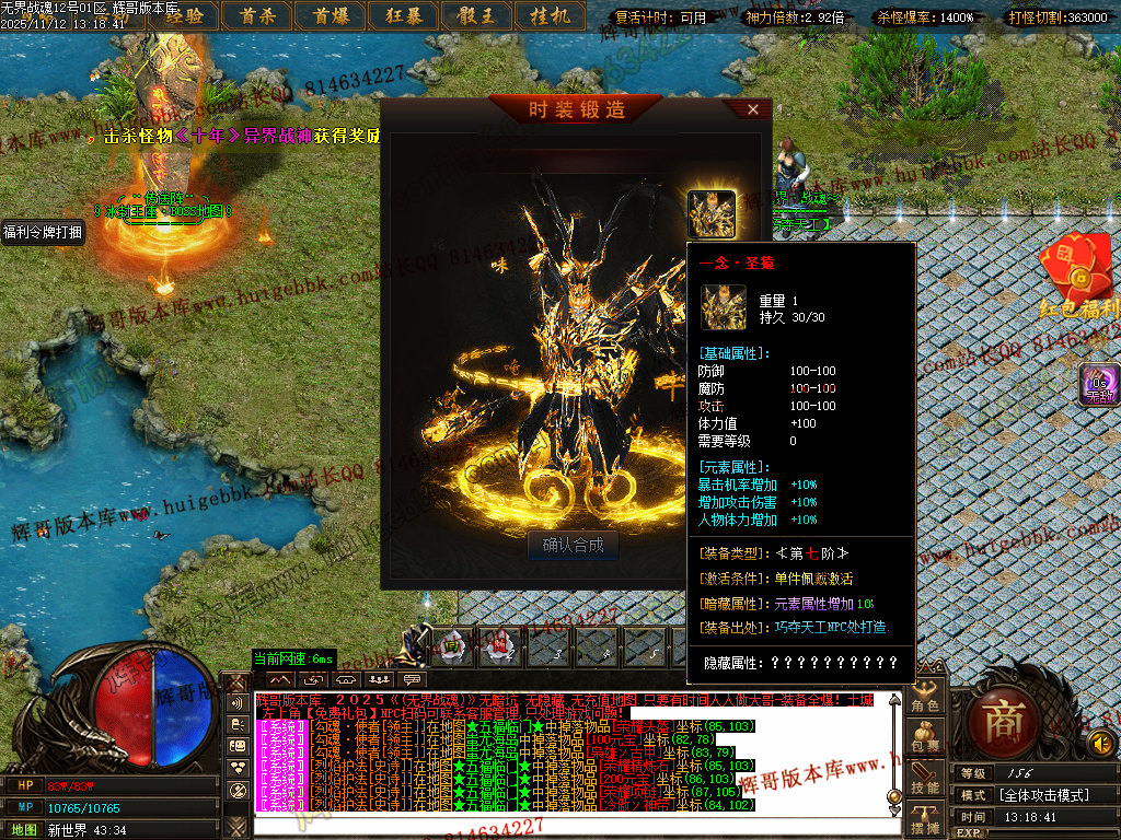 记好首冲地图刷新时间,优先打必爆怪,必爆神域神石(后期转生重要材料,需求量大)。