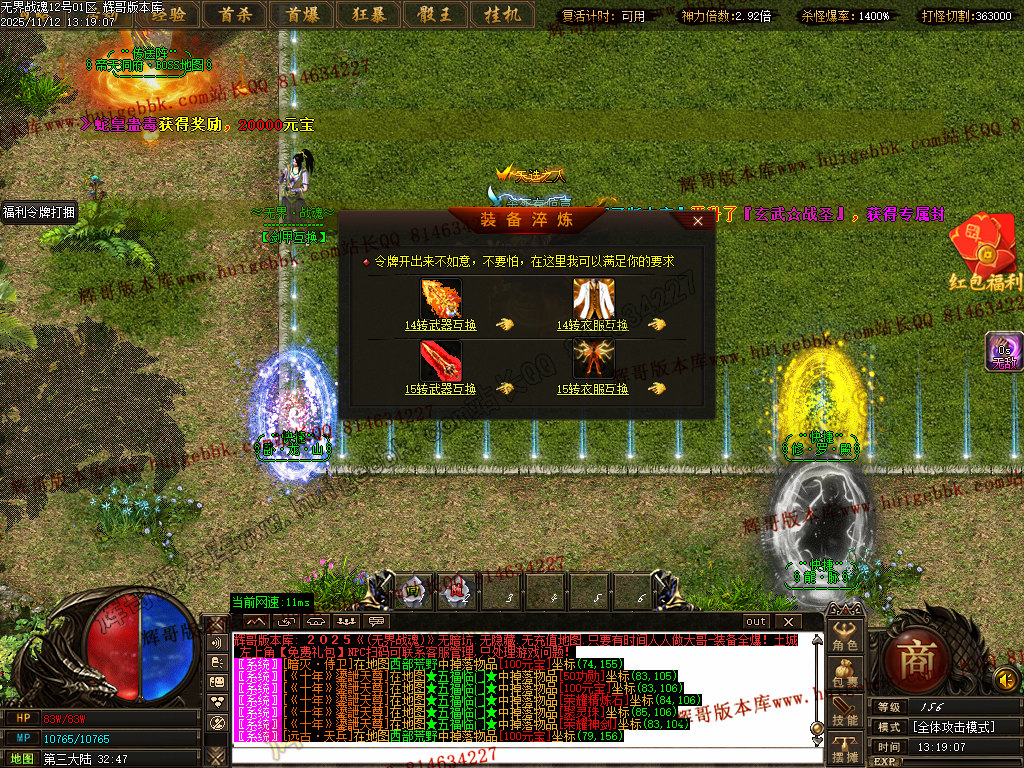 ★群体打乱斗★每天19:30-19:50开启,不爆装备,第一名至第十名领取豪礼,大家踊跃参与!