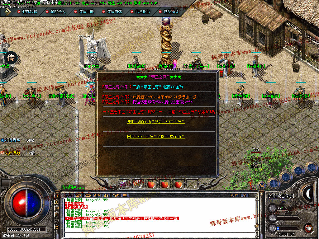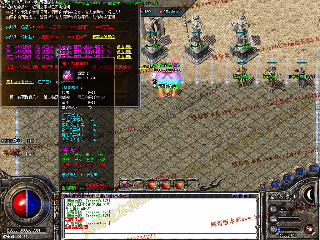 【游戏介绍】:本服PK属性亲测,不秒杀,刀刀到肉,激情无限!沙城等你来战!