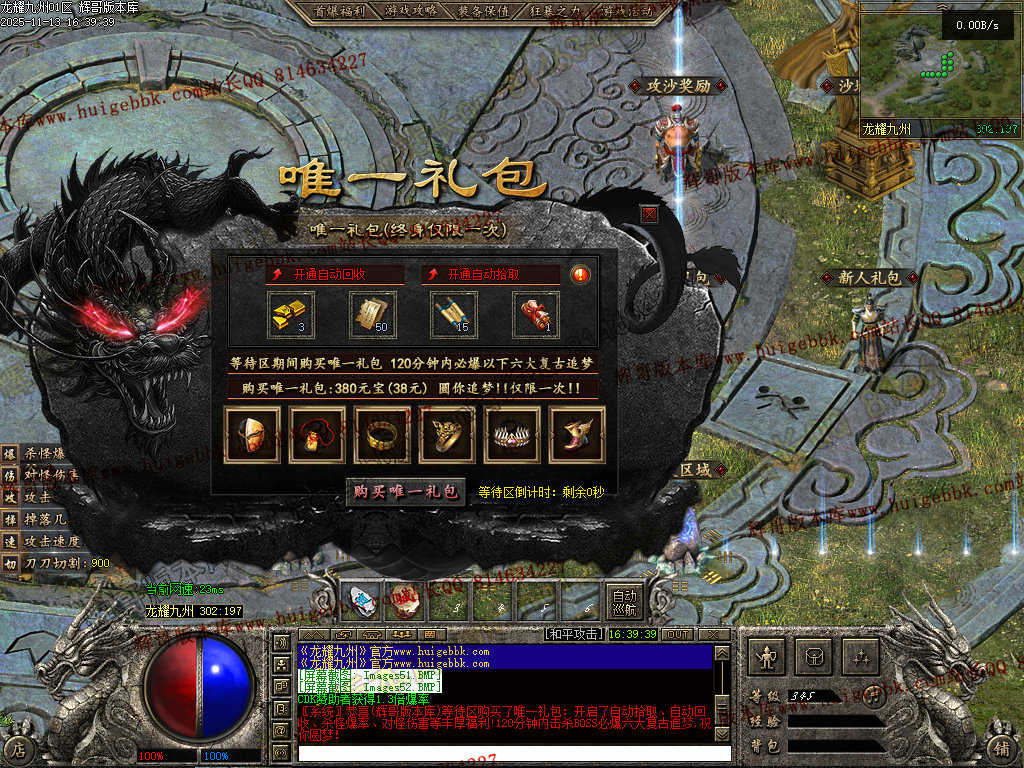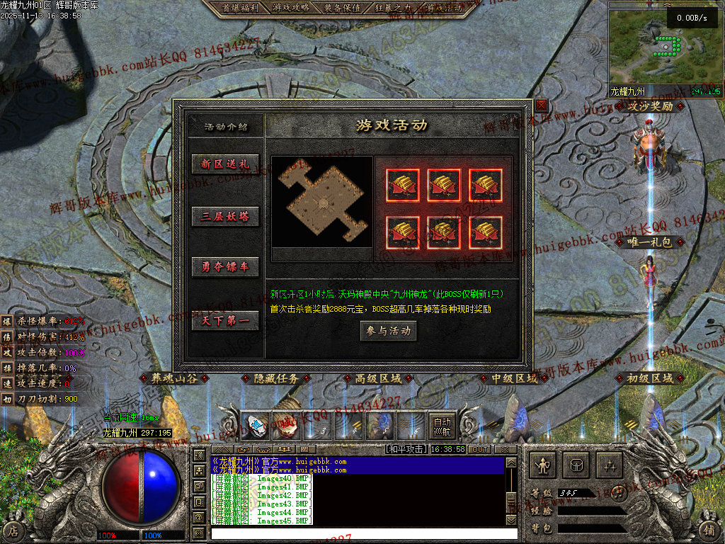 27-397独家龙耀九州三职业传奇服务端-十大神器-六大陆-自动回收-翎风引擎