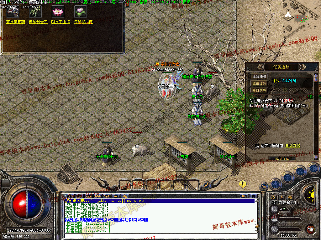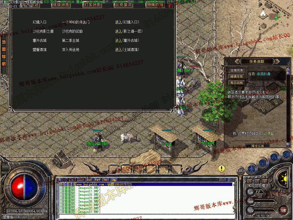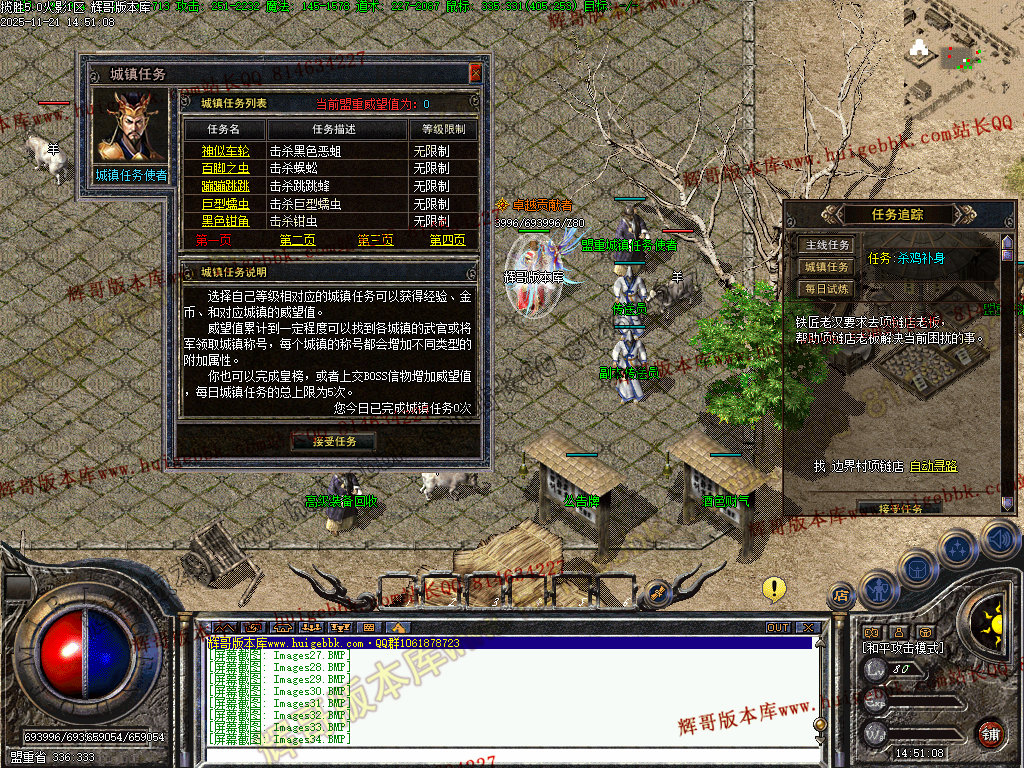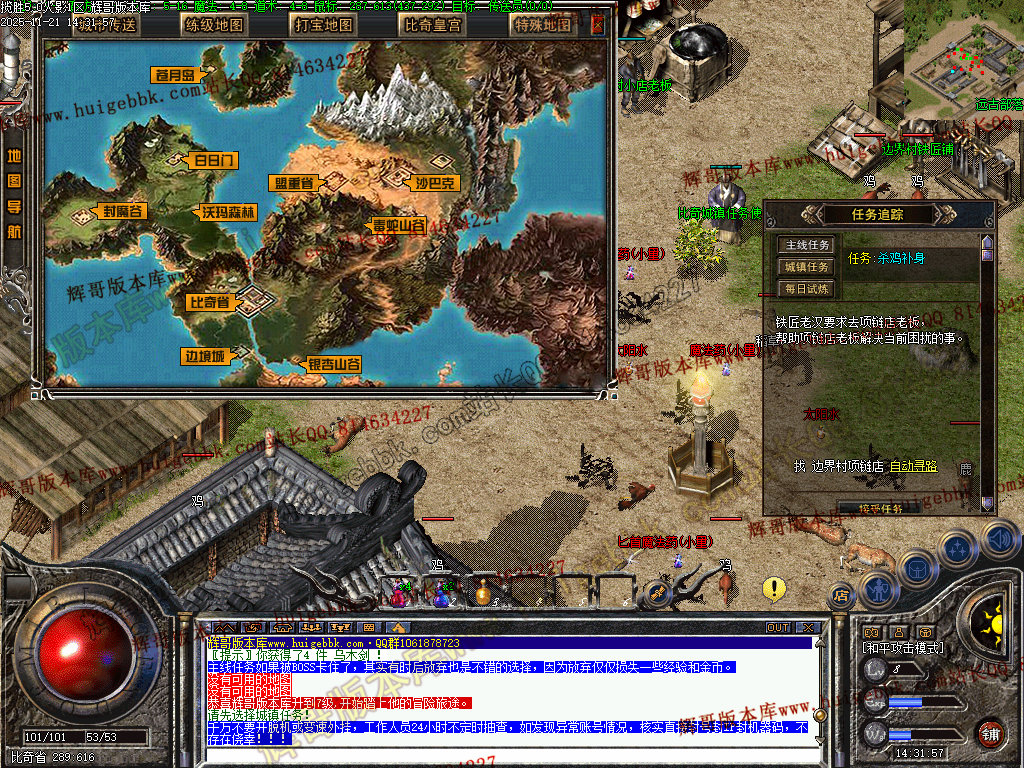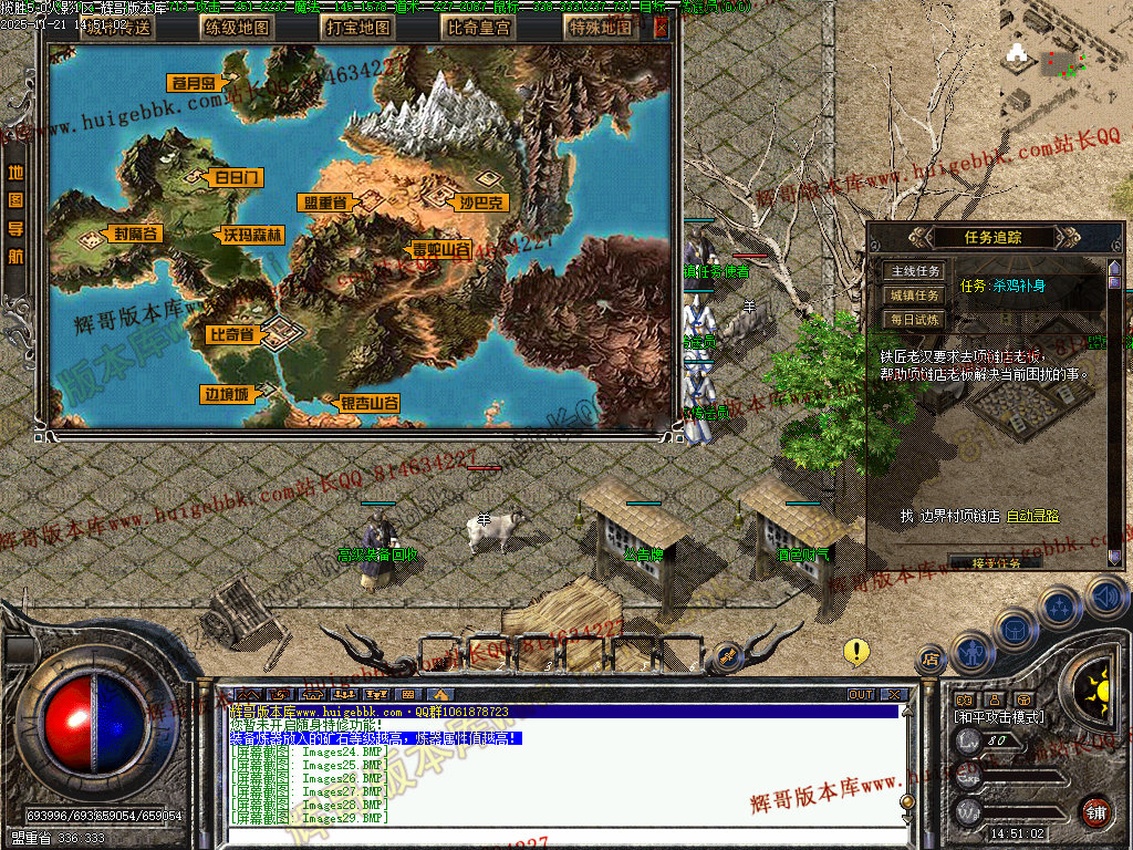 杀猫逐鹿出新村 斩妖除魔入盟重 近观绿涛汇碧海 远眺青山有苍松