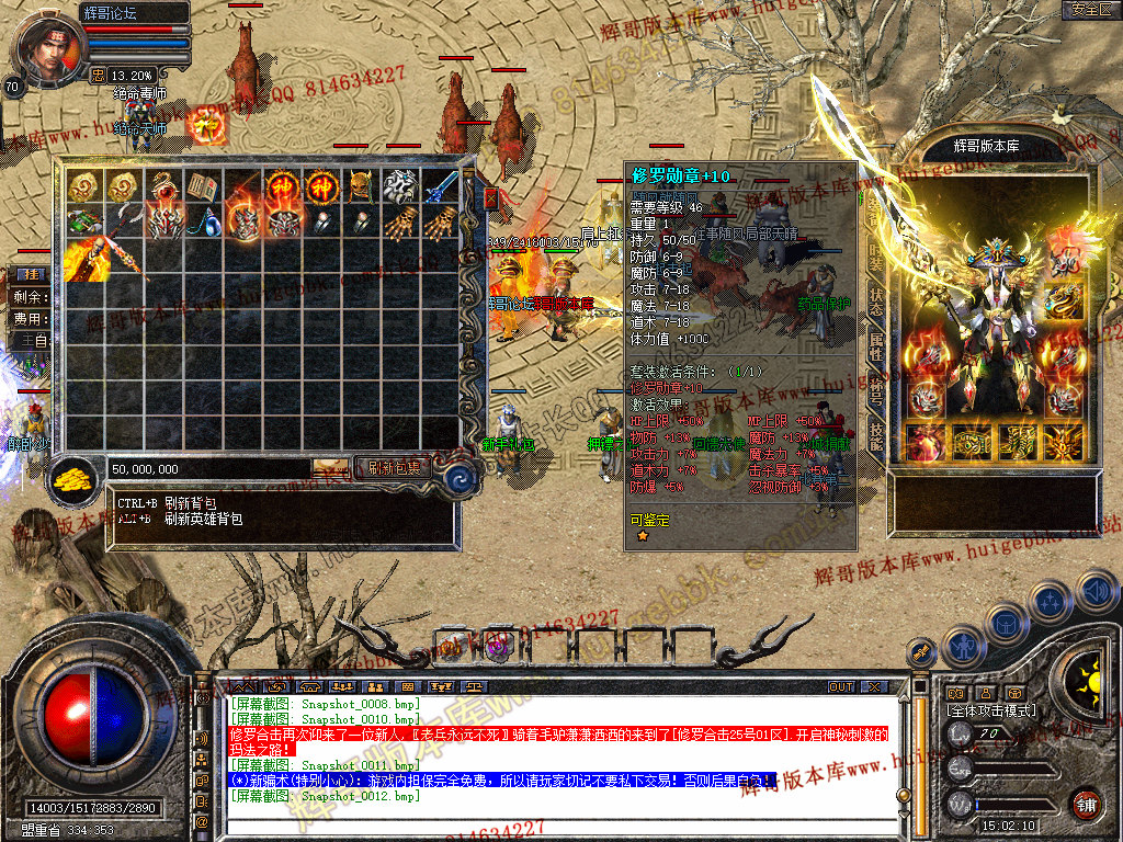 装备排序:雷霆→强化→战神→星王→修罗(终极)→修罗三件套(28.8万血以上爆出)