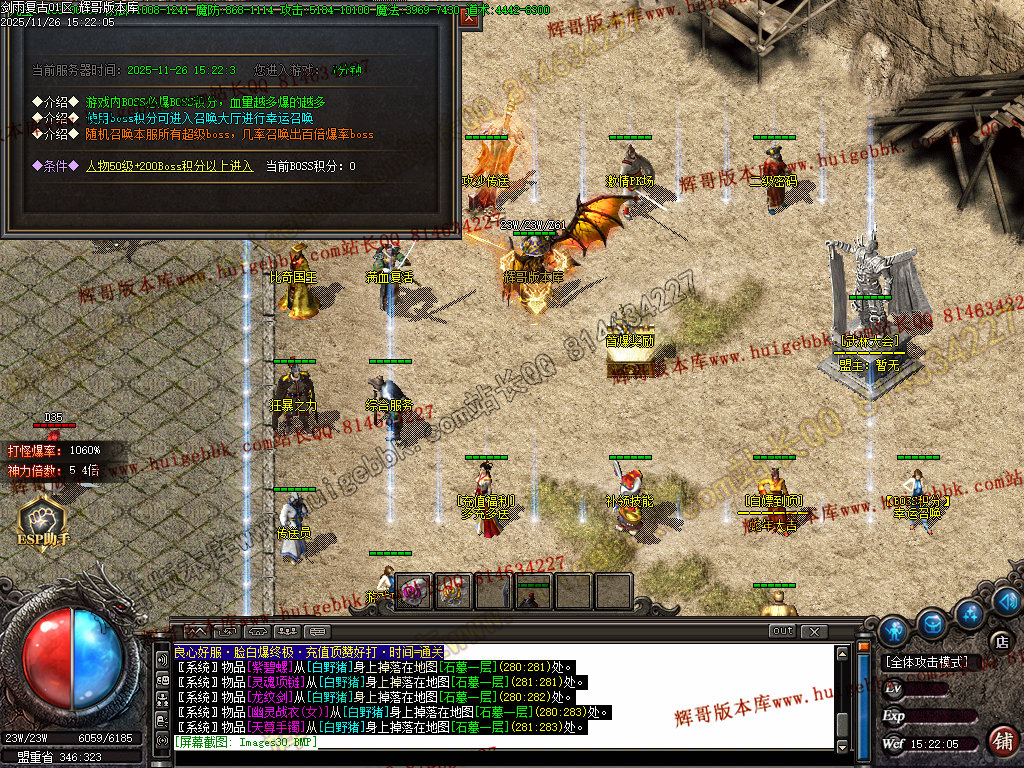 百倍爆率boss:刷新在百倍爆率地图 + 苍龙大城[随机坐标] + 最终追梦战场