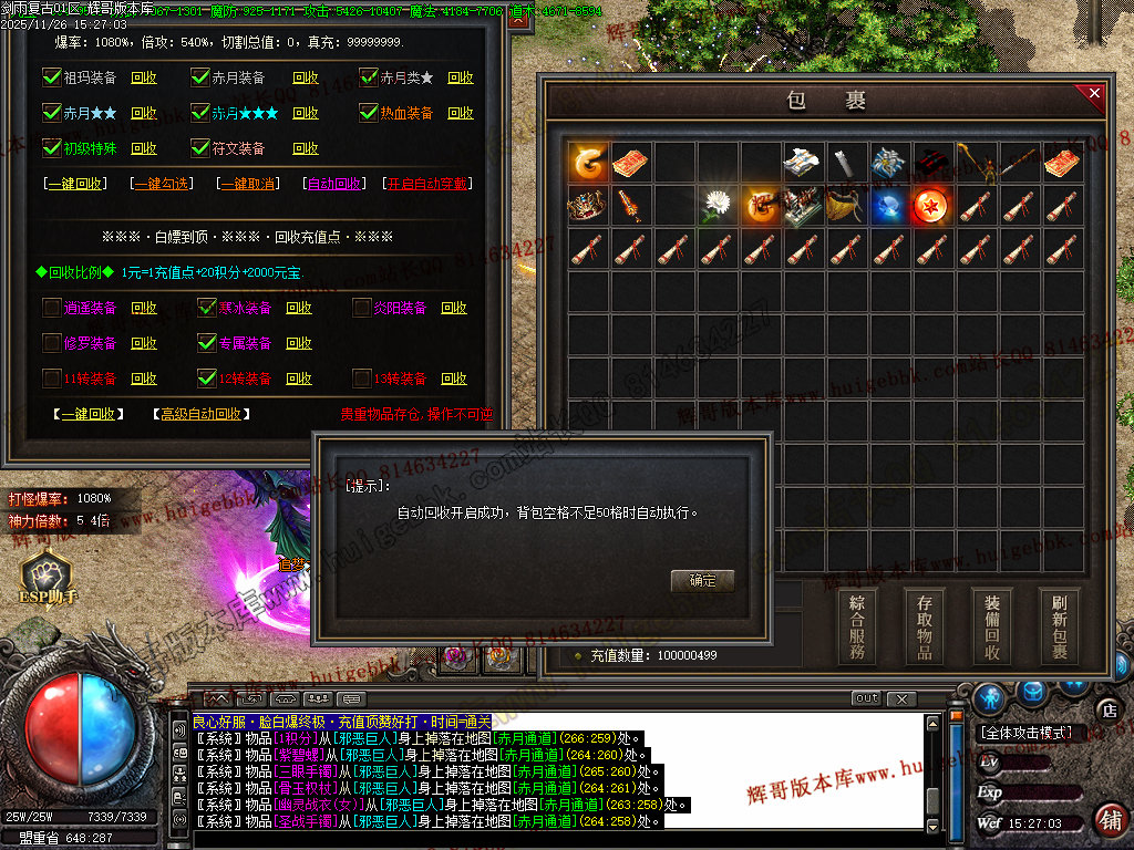 本服逍遥以上装备都可以回收充值点+积分+元宝,有时间绝对轻轻松松就可以打满顶赞。