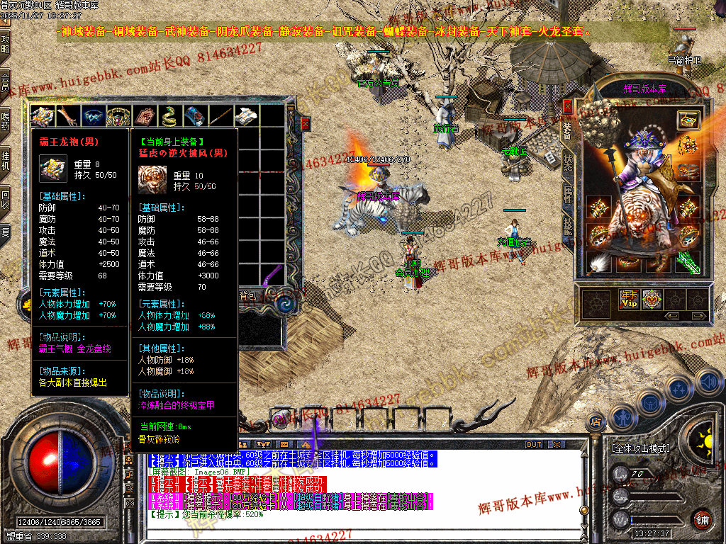 增加全新衣服:65级[猛虎披风]、68级[霸王龙袍]、70级[猛虎の逆火披风].