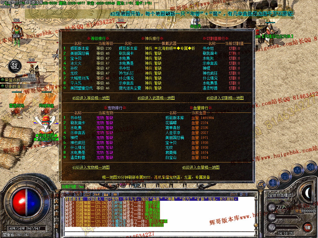 13.有五个个人排行榜,基本人人都有机会,关键每个榜一都有一个地图,里面BOSS刷新时间减半(30分钟刷)