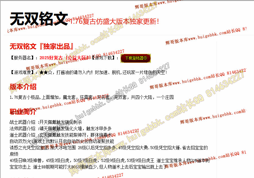 如果发现影响开区的大问题,可联系站长进行免费修复,细节问题自己处理不负责细节问题,