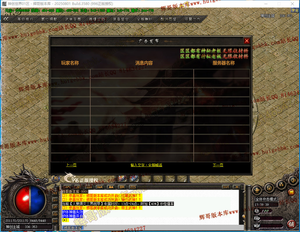 如果发现影响开区的大问题,可联系站长进行免费修复,细节问题自己处理不负责细节问题,