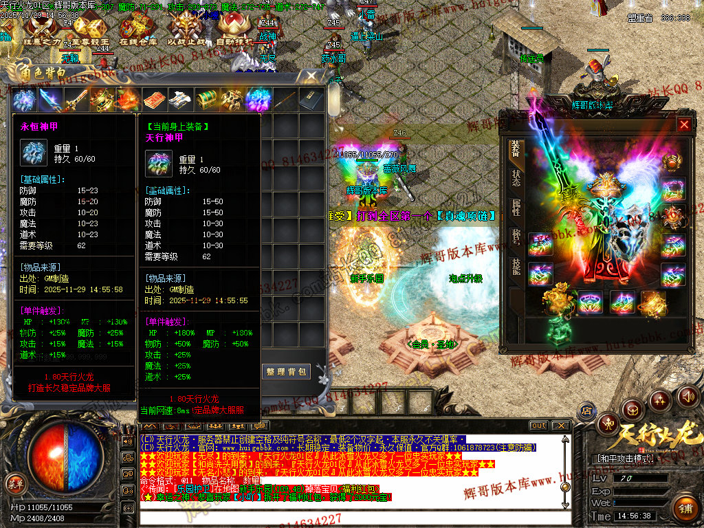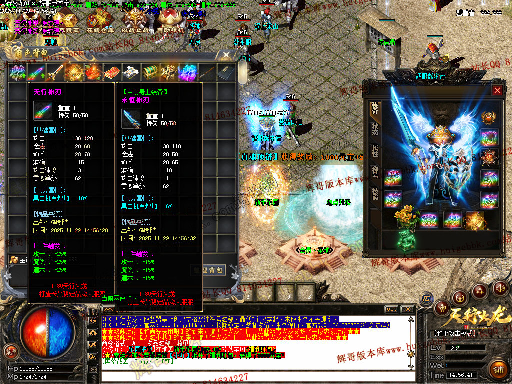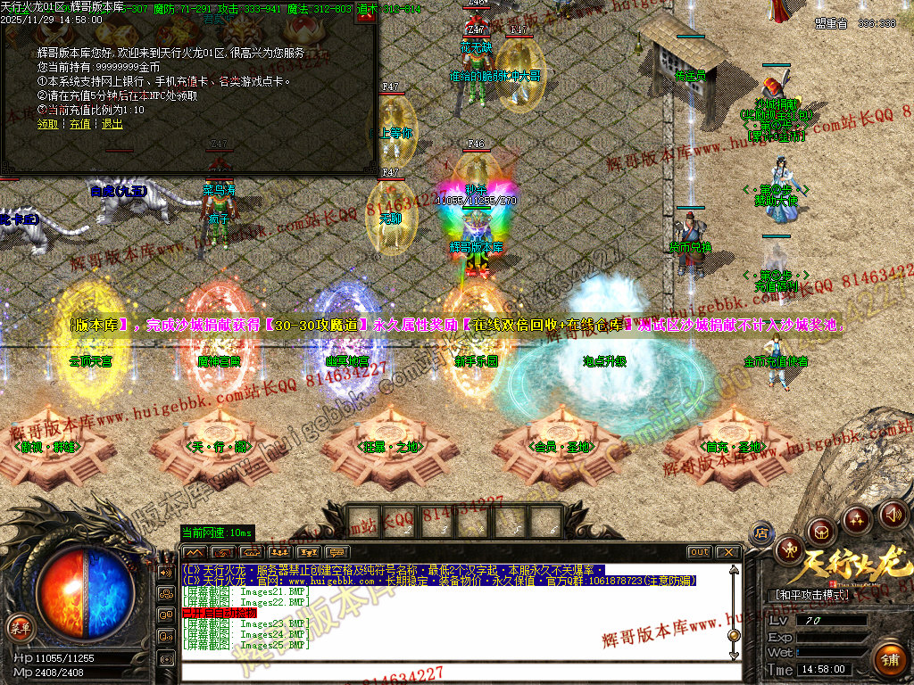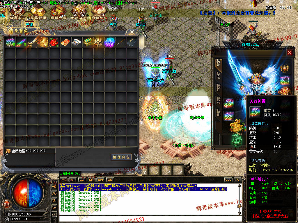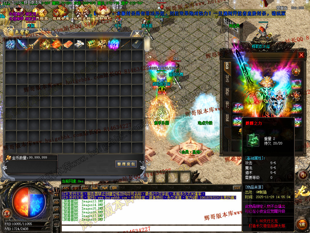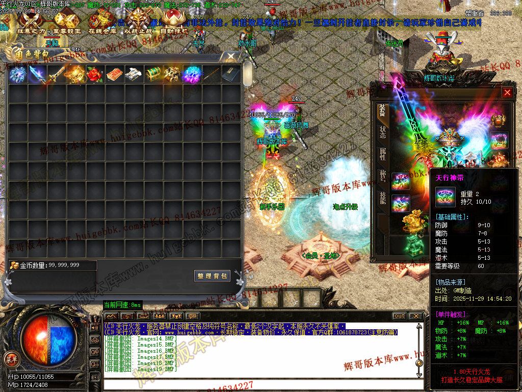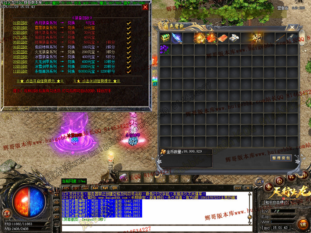 8.开荒建议法师群怪,前期可在综合服务免费融合低级装备增加攻魔道,打怪更快
