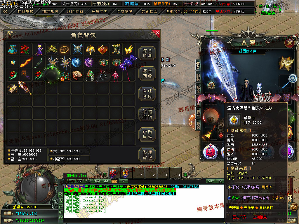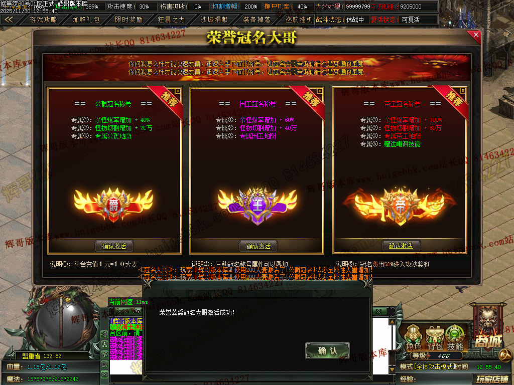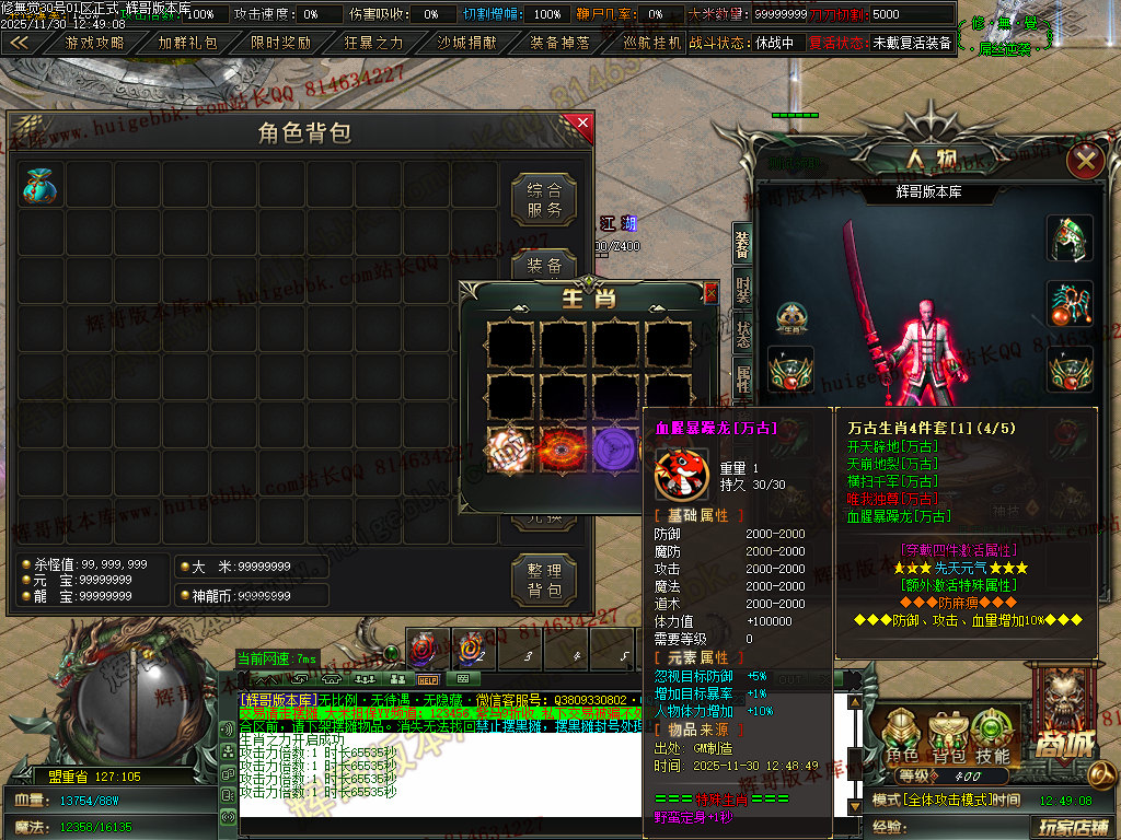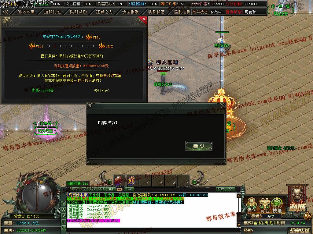 6.充值4档-542块==500元宝+42大米==属性爆率300+切割300万+%30鞭尸+2.0倍切割增幅