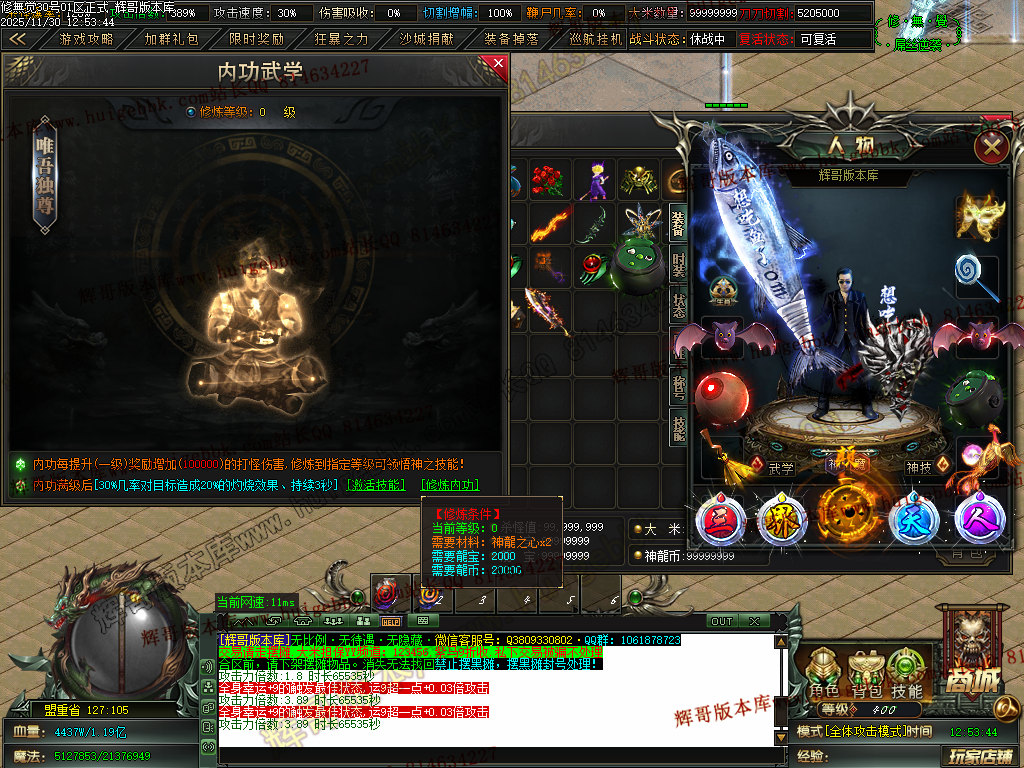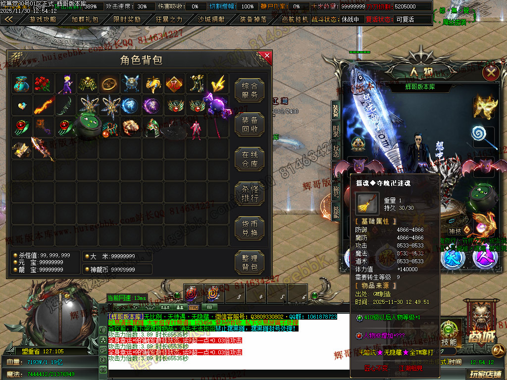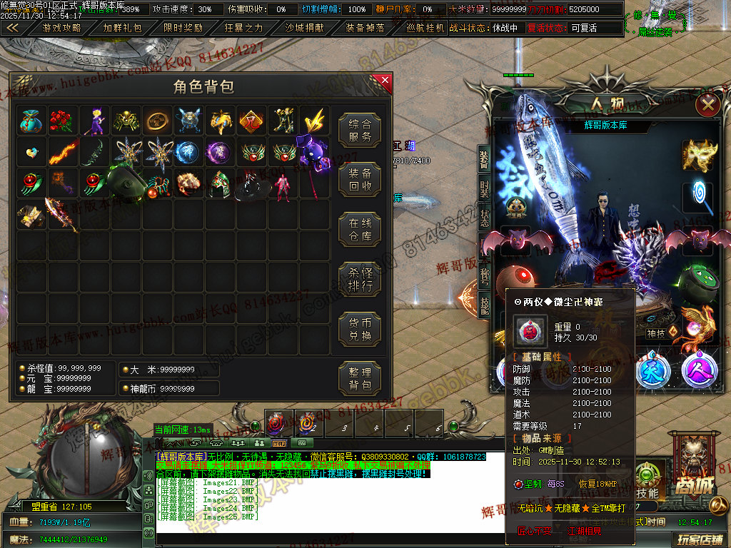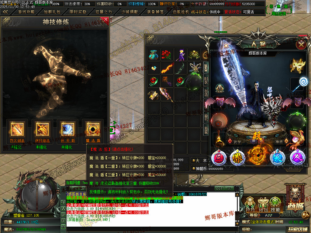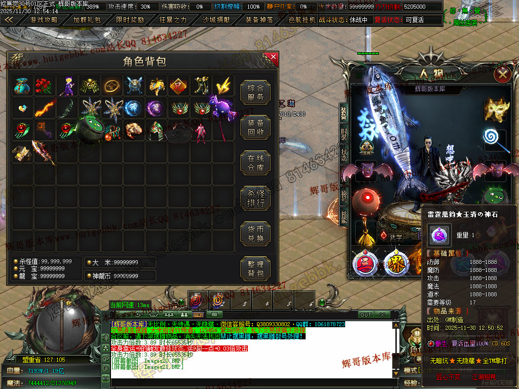 6.充值4档-542块==500元宝+42大米==属性爆率300+切割300万+%30鞭尸+2.0倍切割增幅