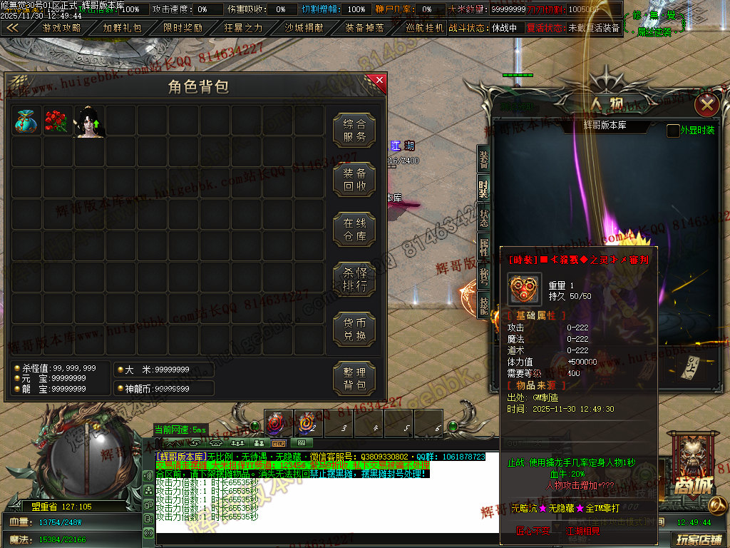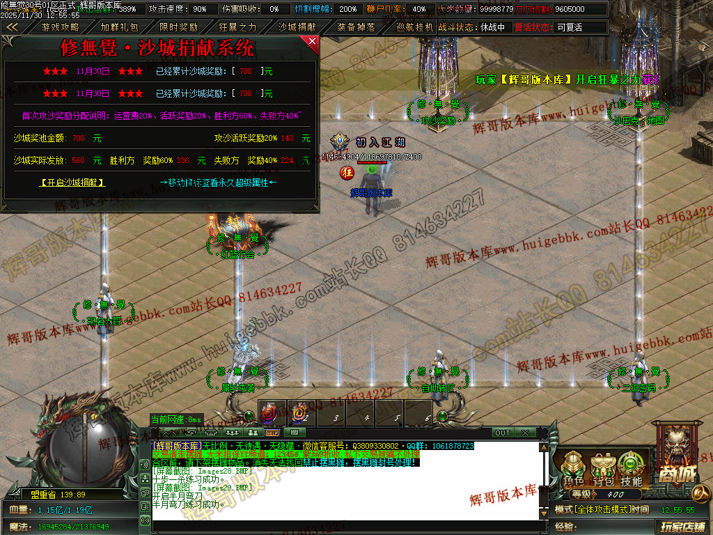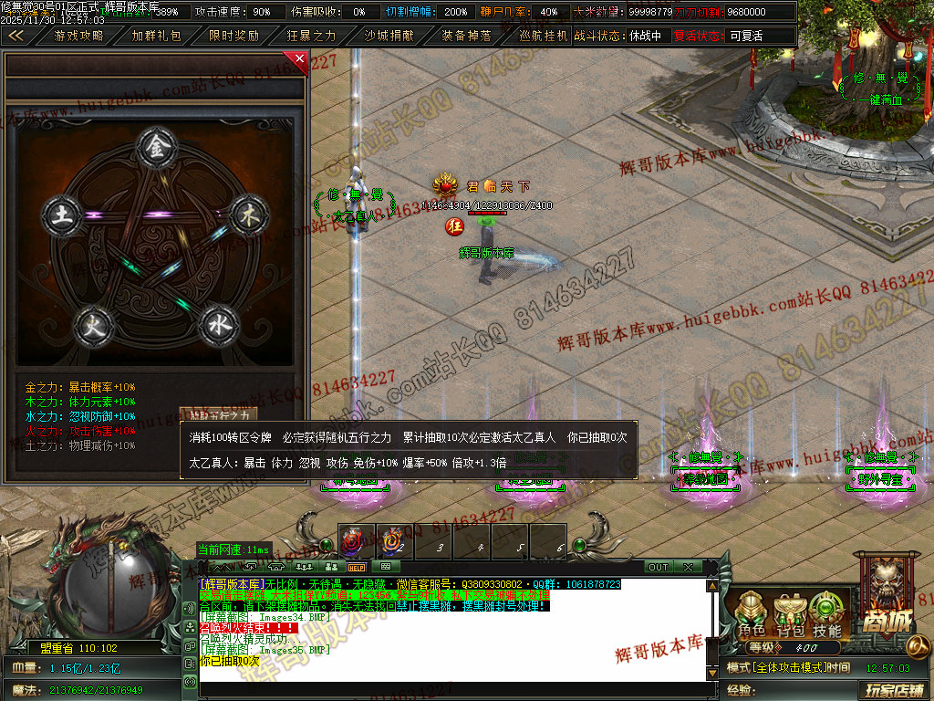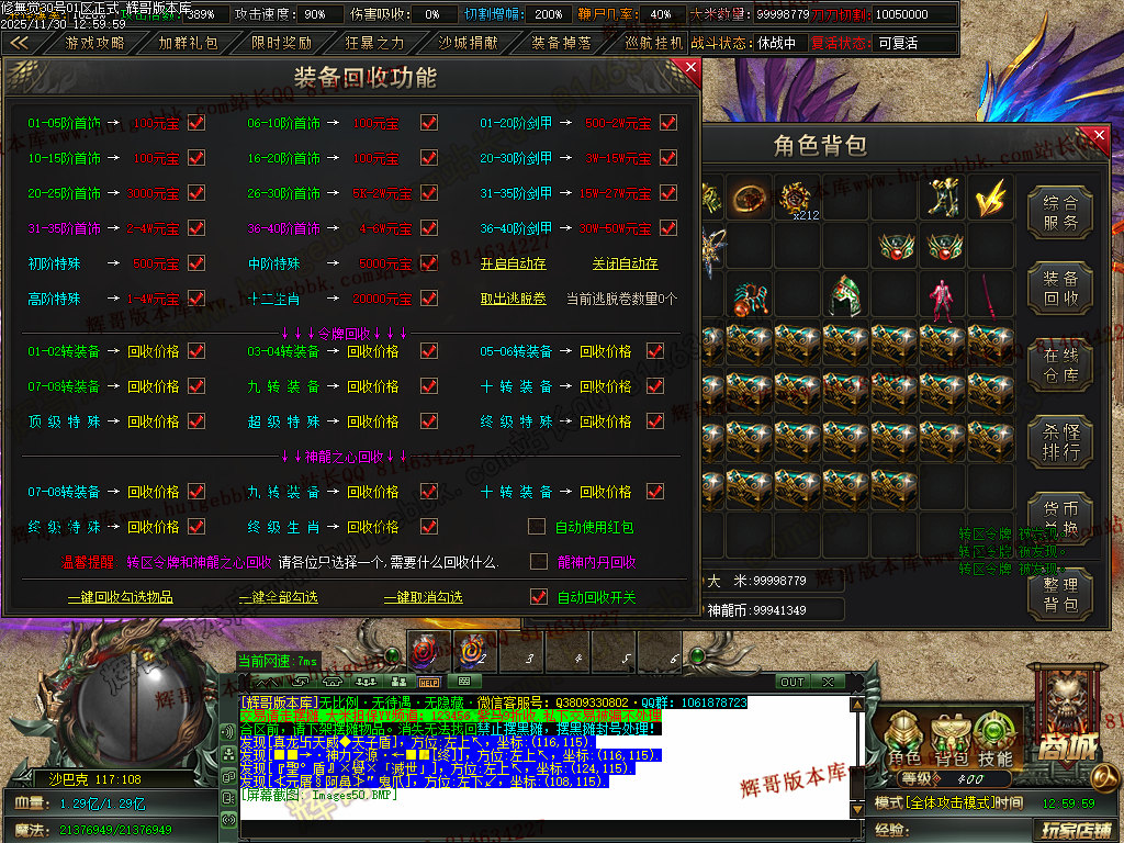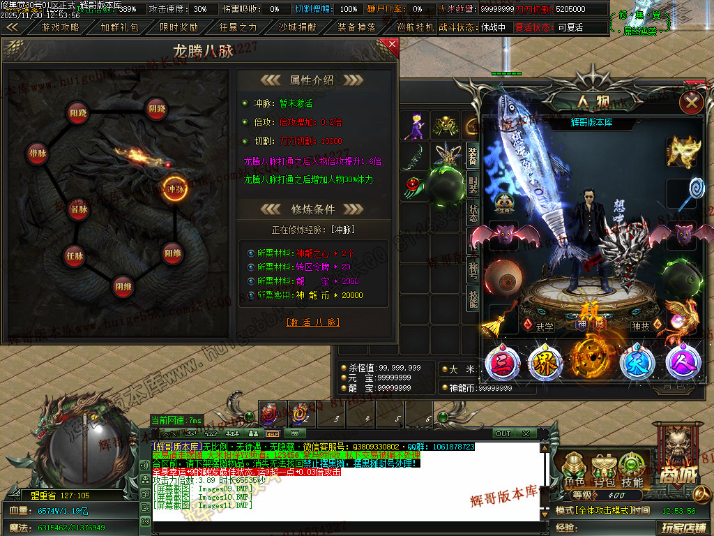 5.充值3档-342块==300元宝+42大米==属性爆率150+切割150万+%15鞭尸+1.5倍切割增幅