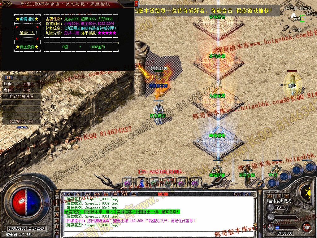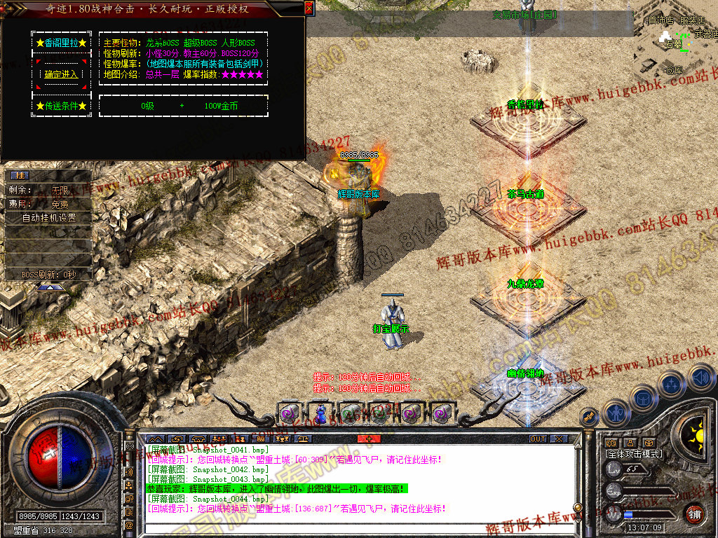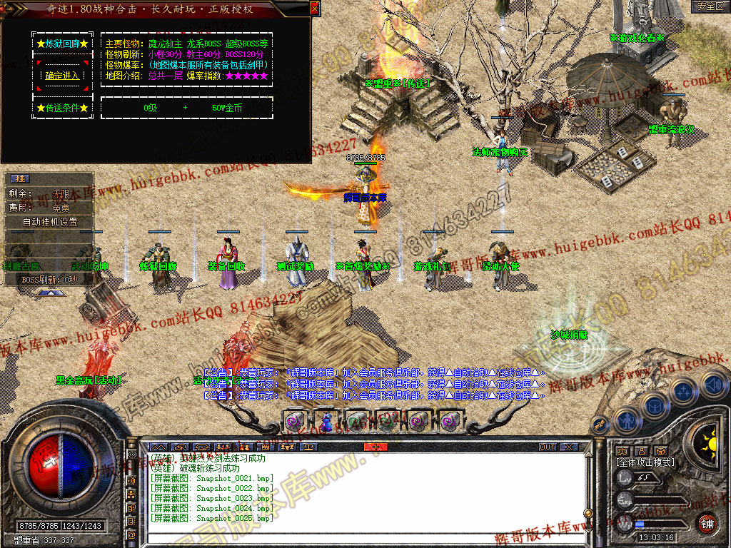 无回馈 无聚灵珠 0级下地图 一切全部靠打 任何地图均有大型BOSS等你去打