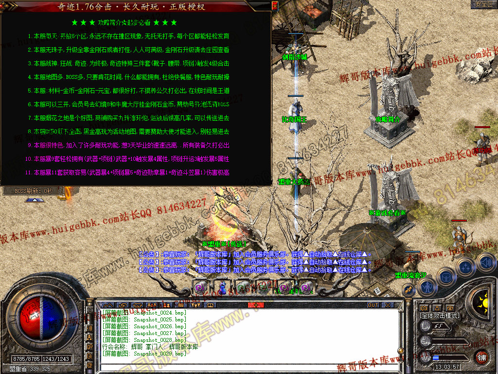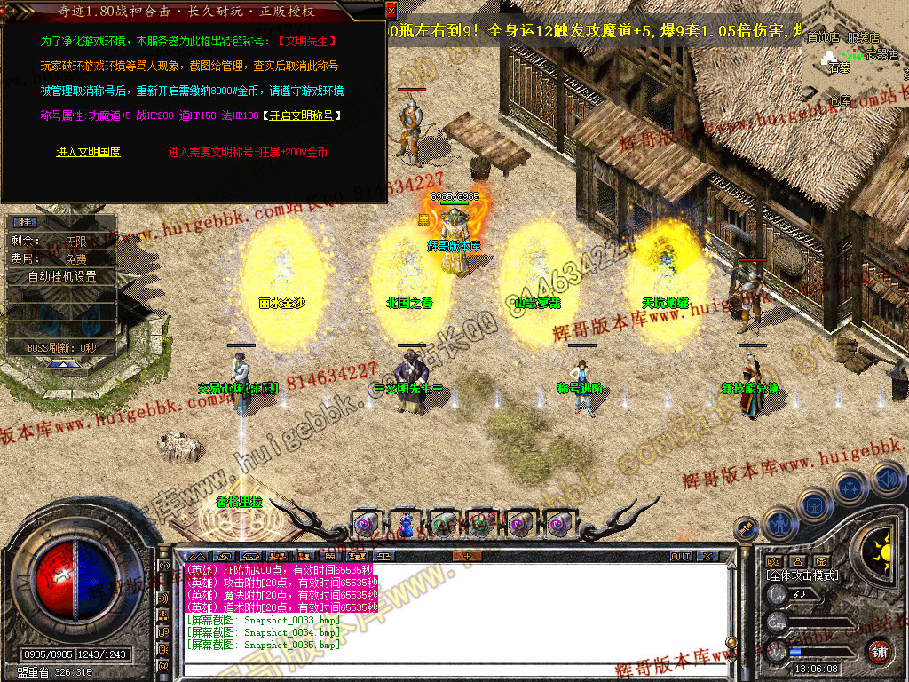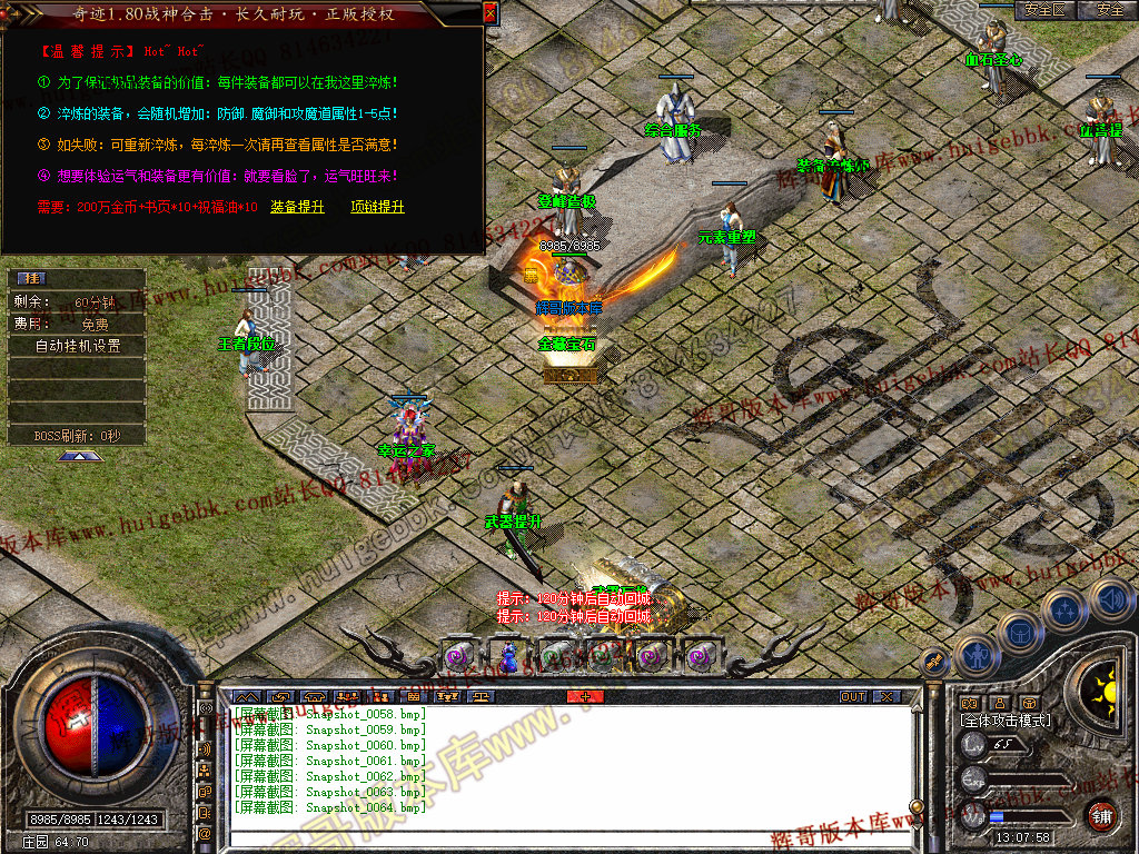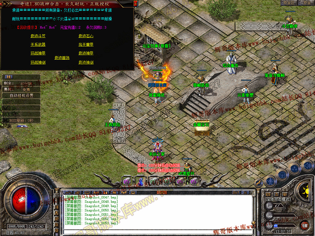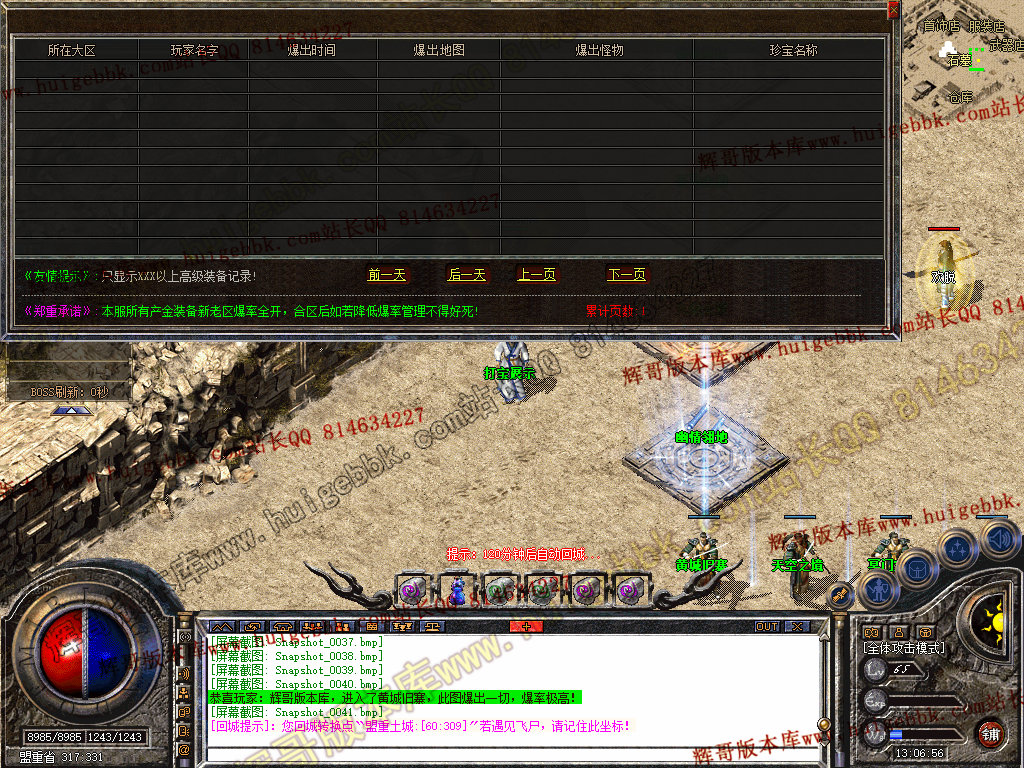 6.本服可以三开,会员号去幻境8和牛魔大厅挂金刚石金币,赞助号各地图清BOSS