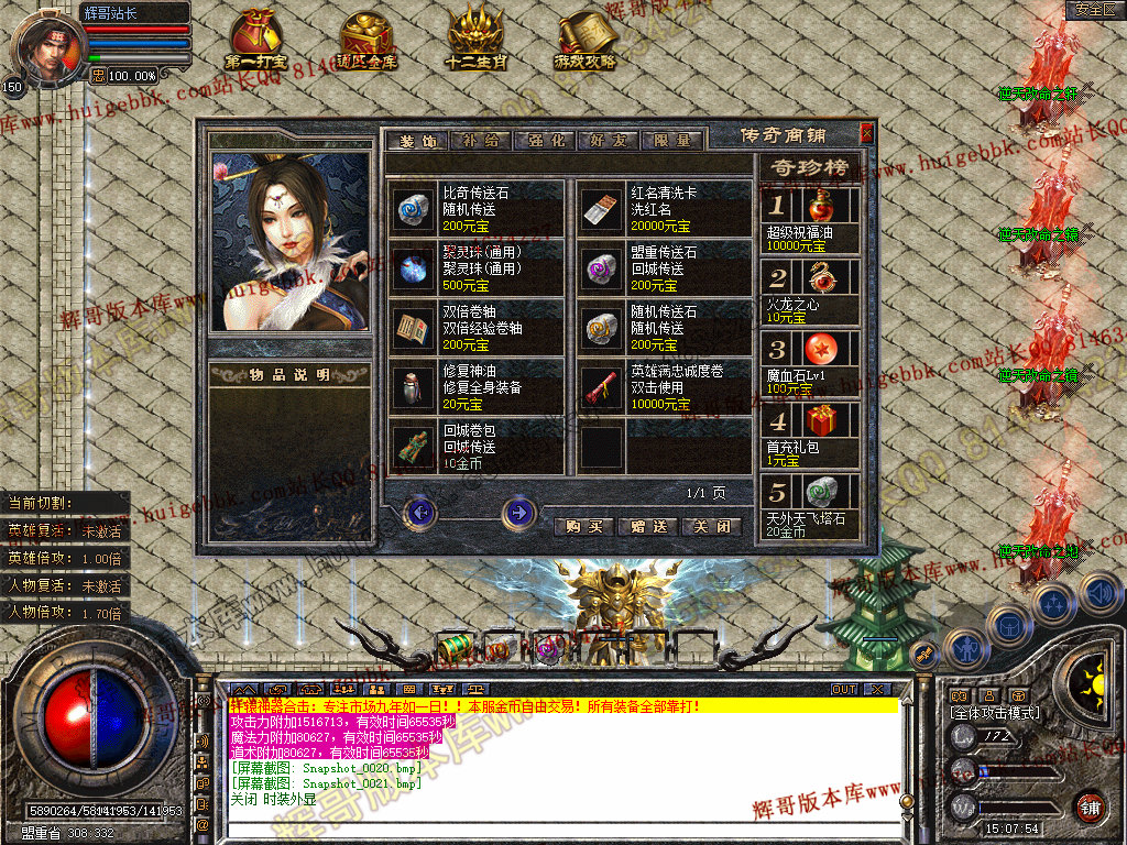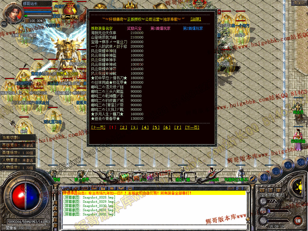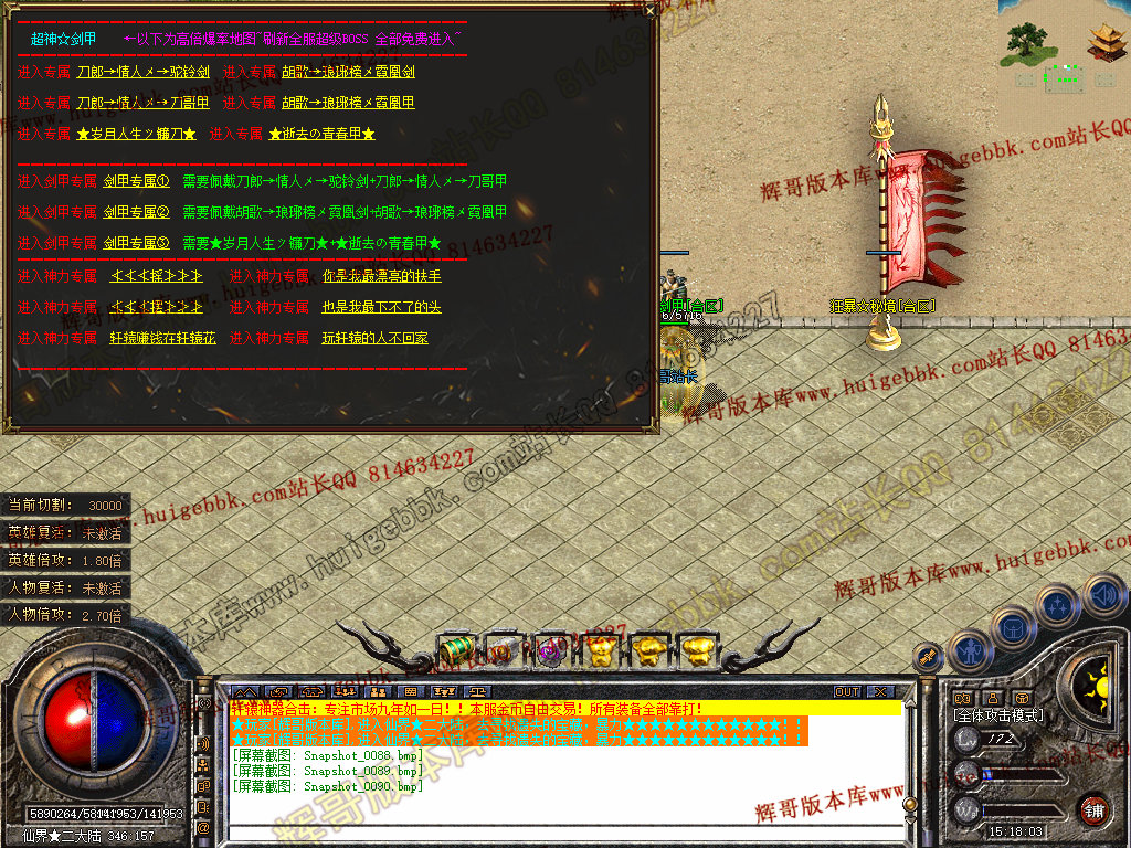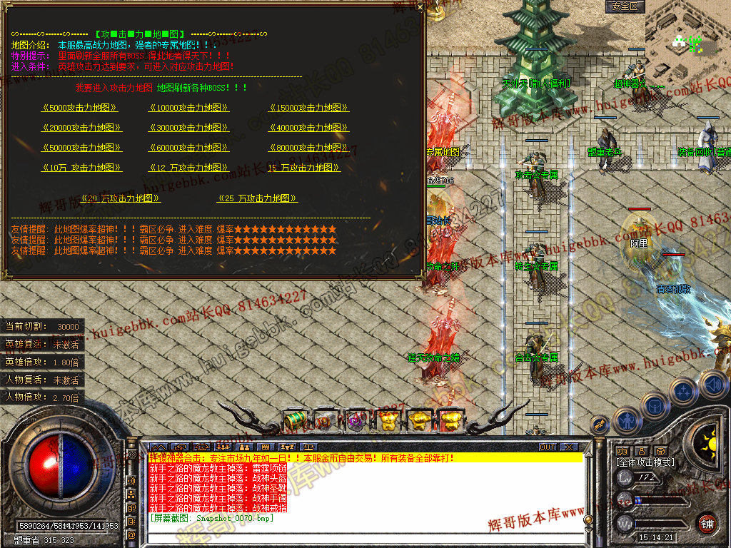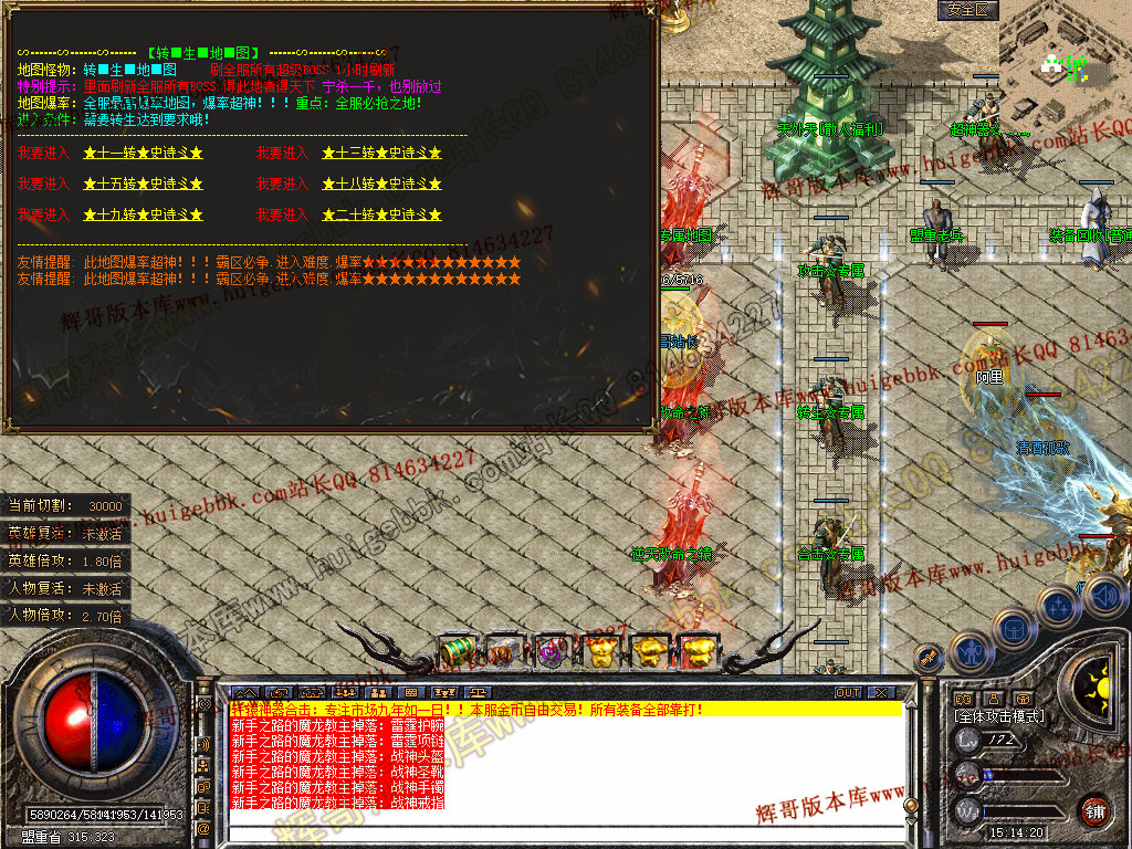 此版本比底板多更新了6套装备.几十个地图还增多了4套四格
