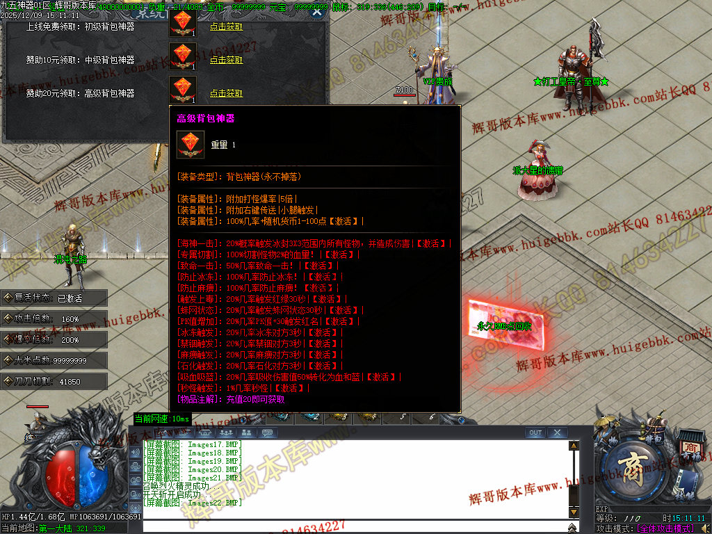 领取充值满500元美女赠送的超级福利奖励 获得超级BUFF:几率切割怪物20%血量!