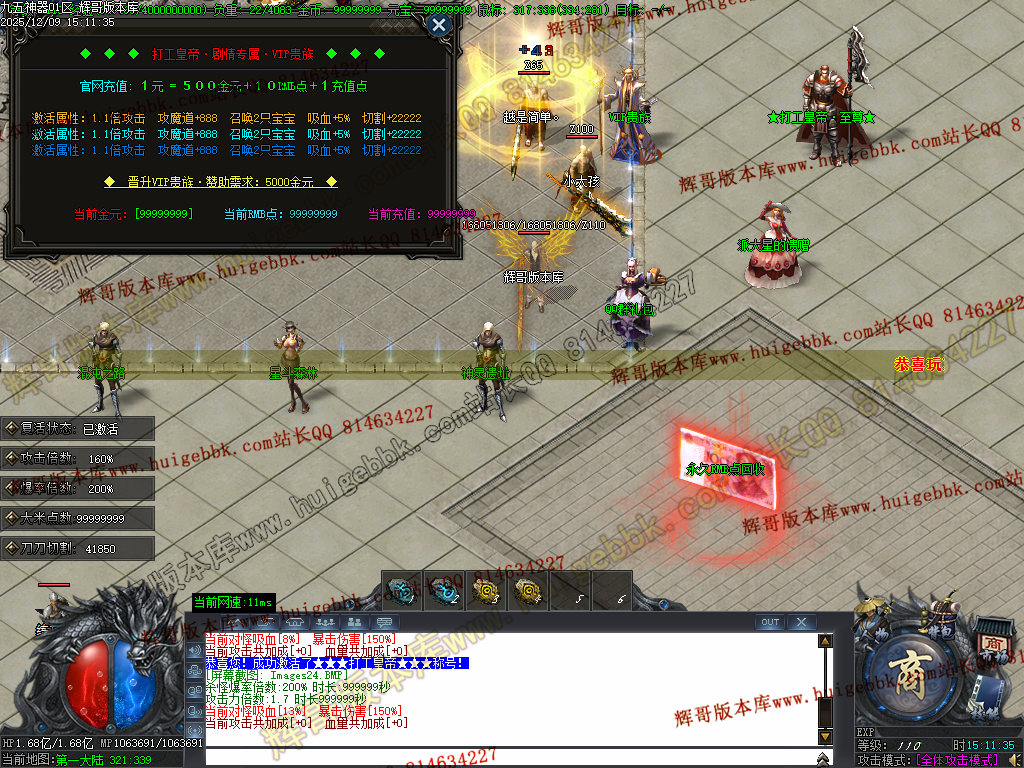 花费5000金元 土城右下角领取回馈会员(满回馈) 开启沙城捐献200RMB点+狂暴100RMB点