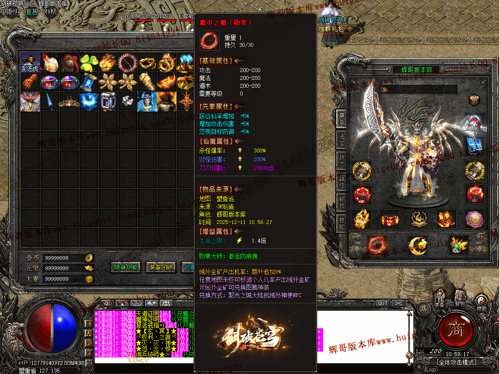 [背包专属]攻击力的百分8转换为切割值直接斩杀血里低于10%的怪物攻魔道+159等级+1