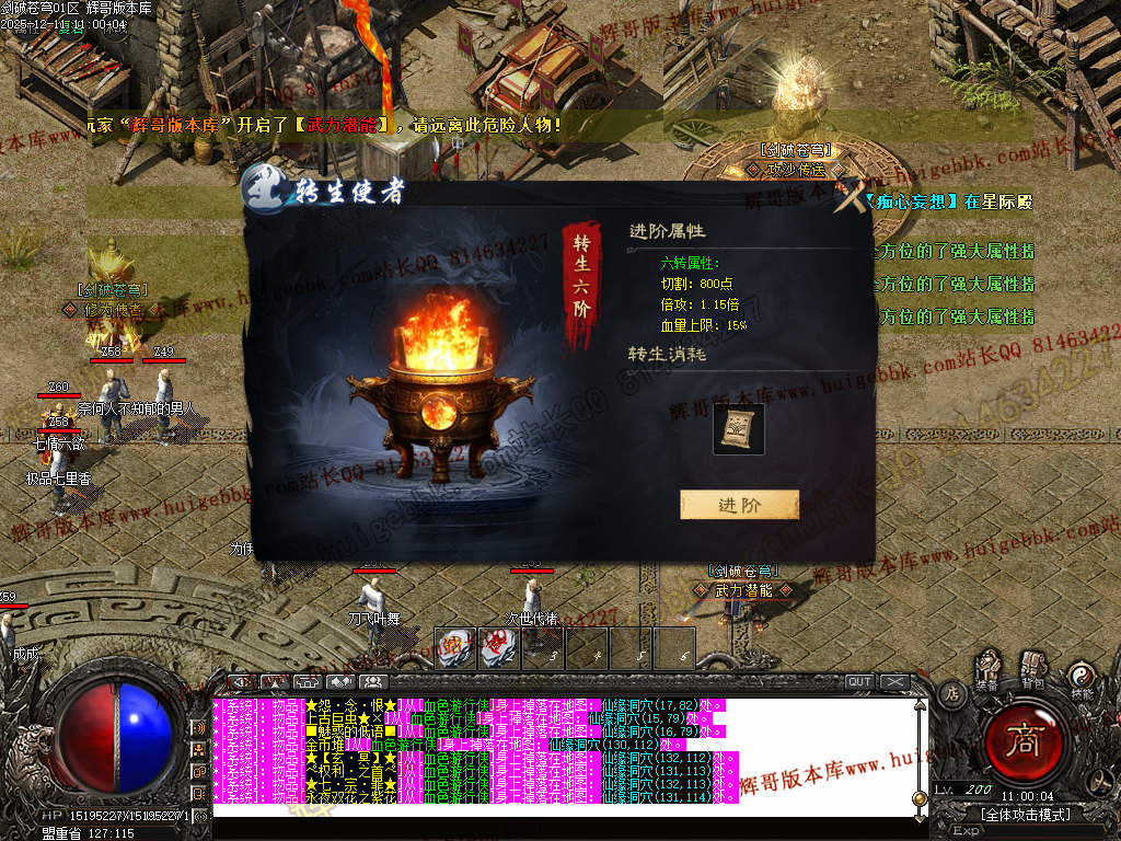 转生使者:需要材料【转生证书】即可进行转生,提升倍功属性!