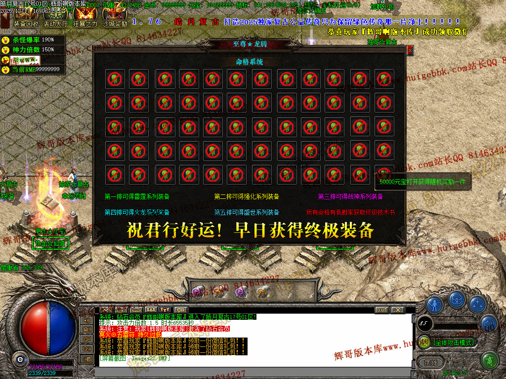 【皓月复古】:|怪物会爆幸运卷,散人也可直接进入后期终极地图!