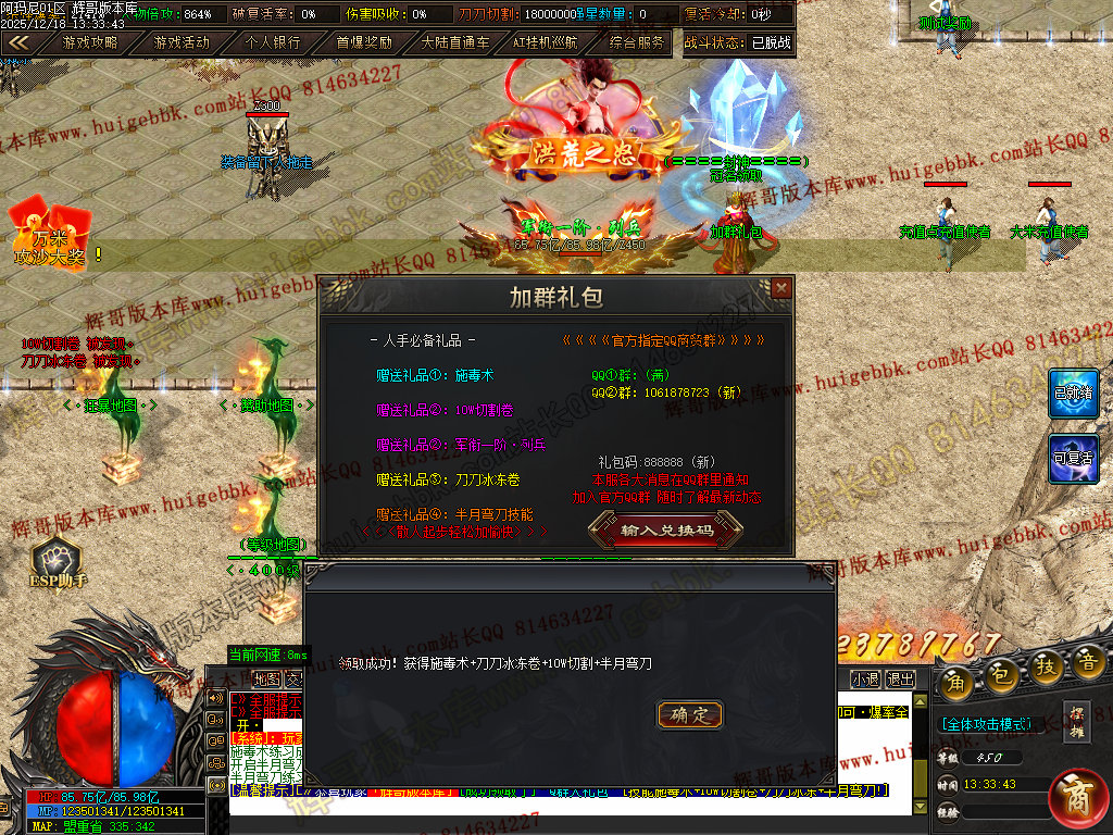 新人上线送:自动拾起+自动回收+狂暴+会员+满切割+自动挂机