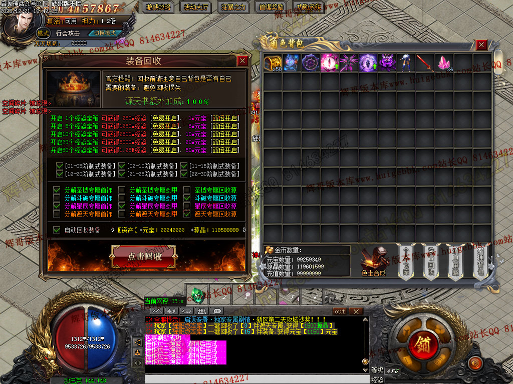 【元宝】回收装备获得,满级源天书回收翻倍