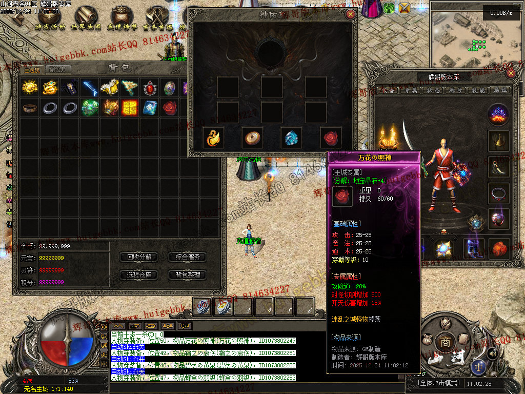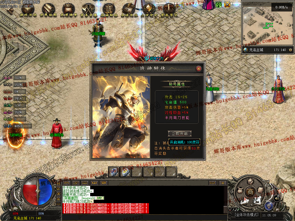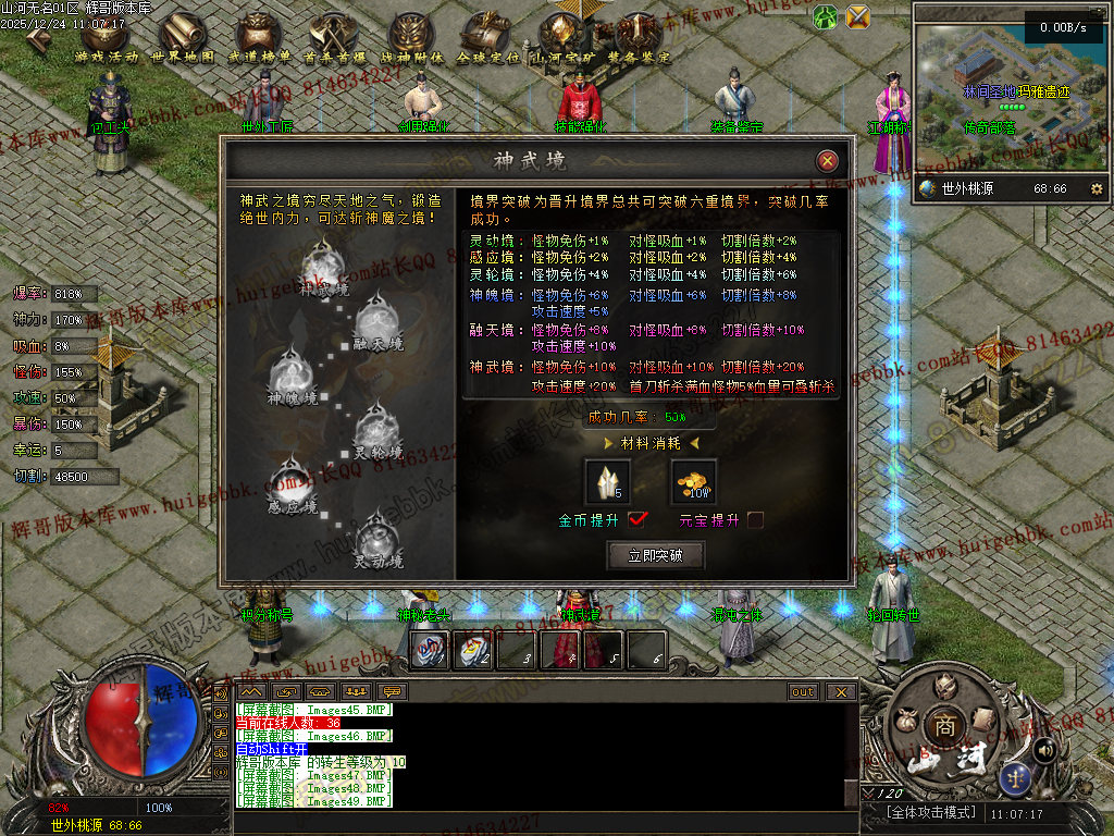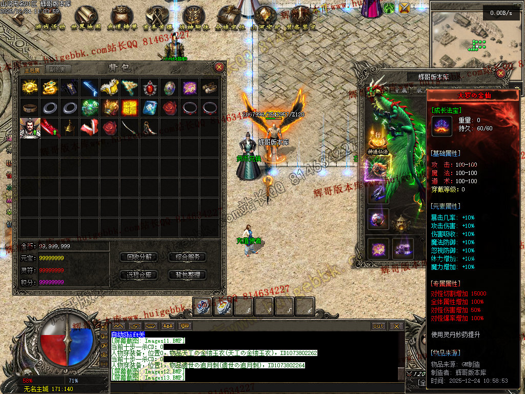 激活三个神级仙法(紫色):获得人物等级*1000点切割伤害 (起号必备,打怪效率直接提升20倍,体验感拉满!)