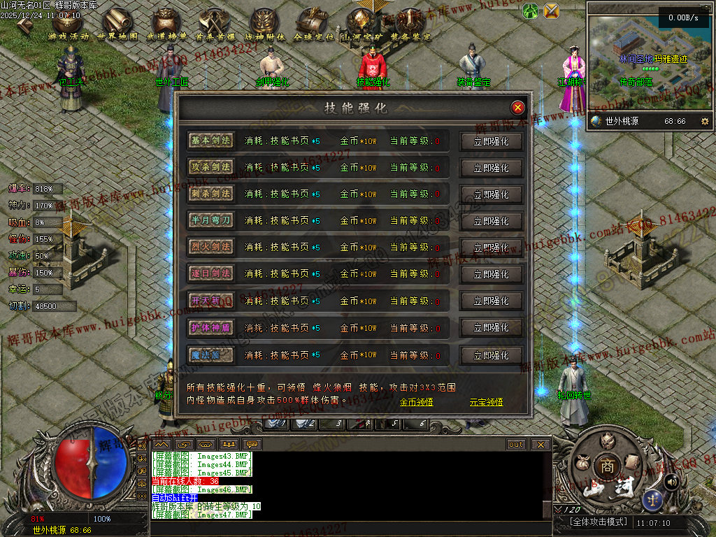 2. 武林绝学全部修炼至十重,可获得神技【全屏吸怪】主动技能。