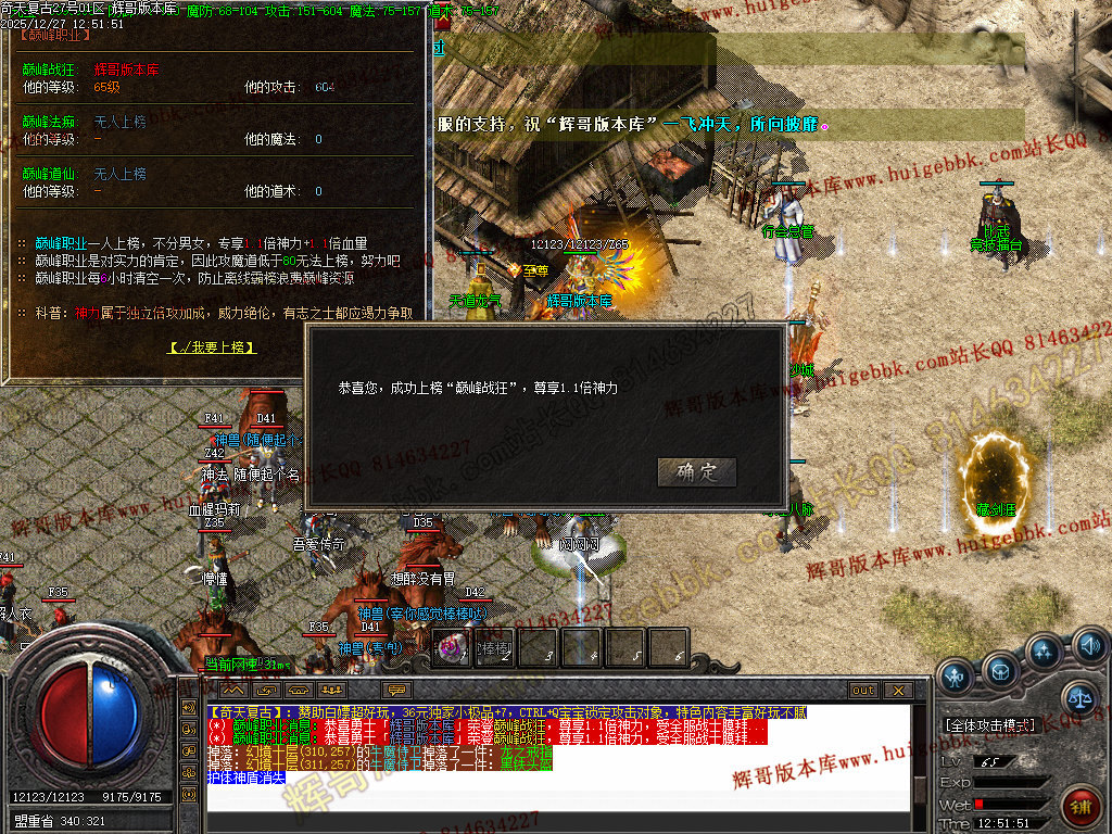 5:巅峰职业:天下第一,增加倍功与血量,打架必备,老板必抢