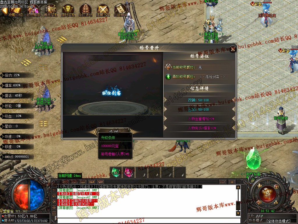 【称号】 英魂称号、神魂称号在乱世秘境以及华山秘境提升 英魂提升爆率最高300爆率,神魂为倍攻血量     【爆率倍攻】