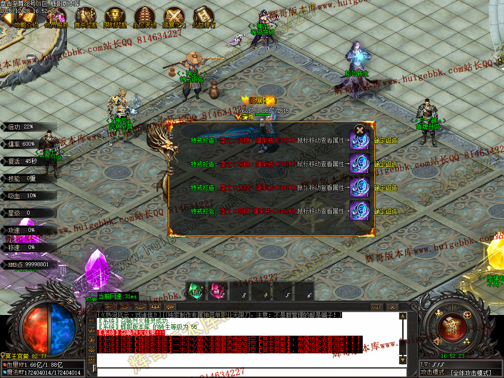本服所有BOSS爆所有装备,倍率不同只是爆率不同而已!~本服承诺爆率永不关闭。