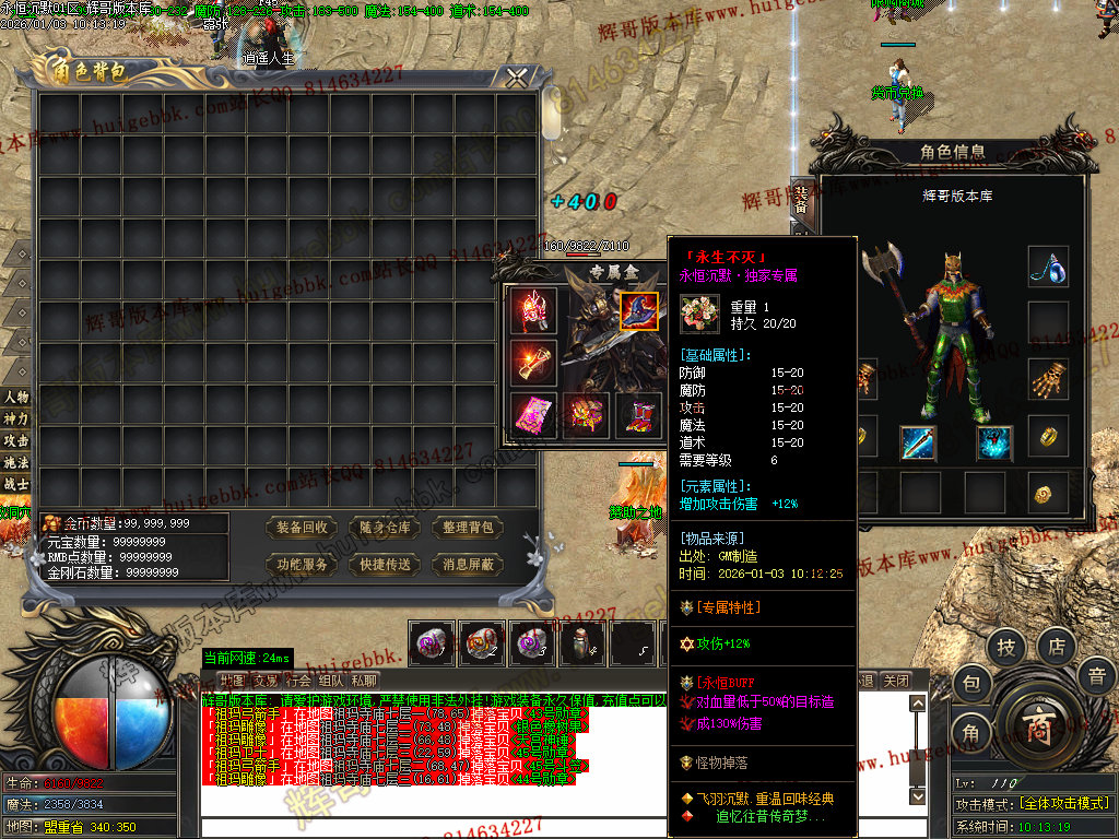 本服承诺:装备材料货币全可打到,装备元宝不售卖,全靠自己打!