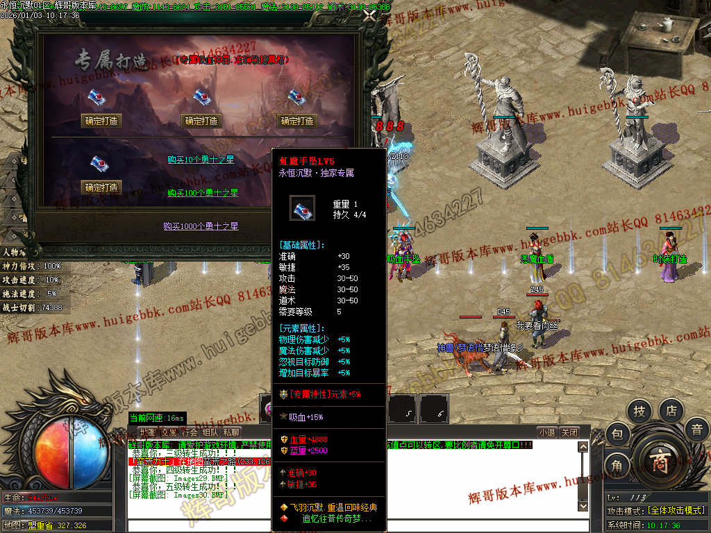 折扣商城购买元宝,合成血石和护符(附加传送和切割属性)