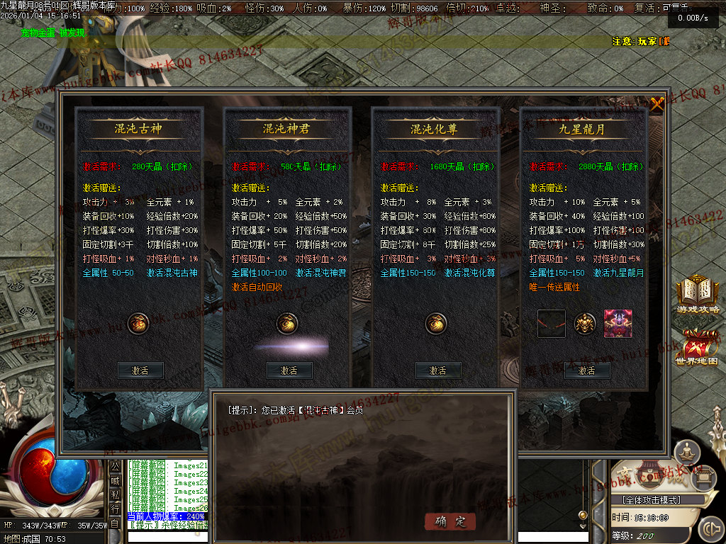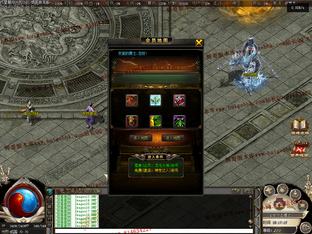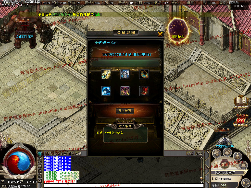 <逆天地图:会员地图,神之禁地,神宠秘境,逆天之城,天皇领域,圣皇领域><拥有逆天称号><可以免费进入所有地图>