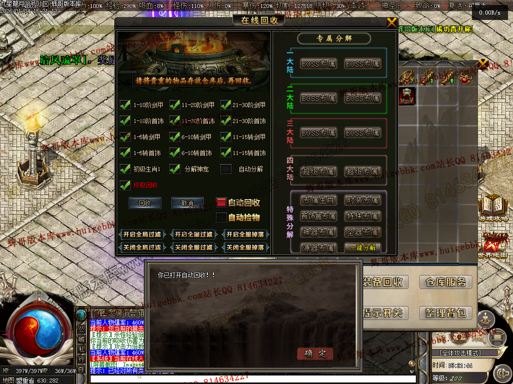27-670独家九星龙月专属神器超强BUFF单职业版本-带假人-自动回收-自动拾取-翎风引擎