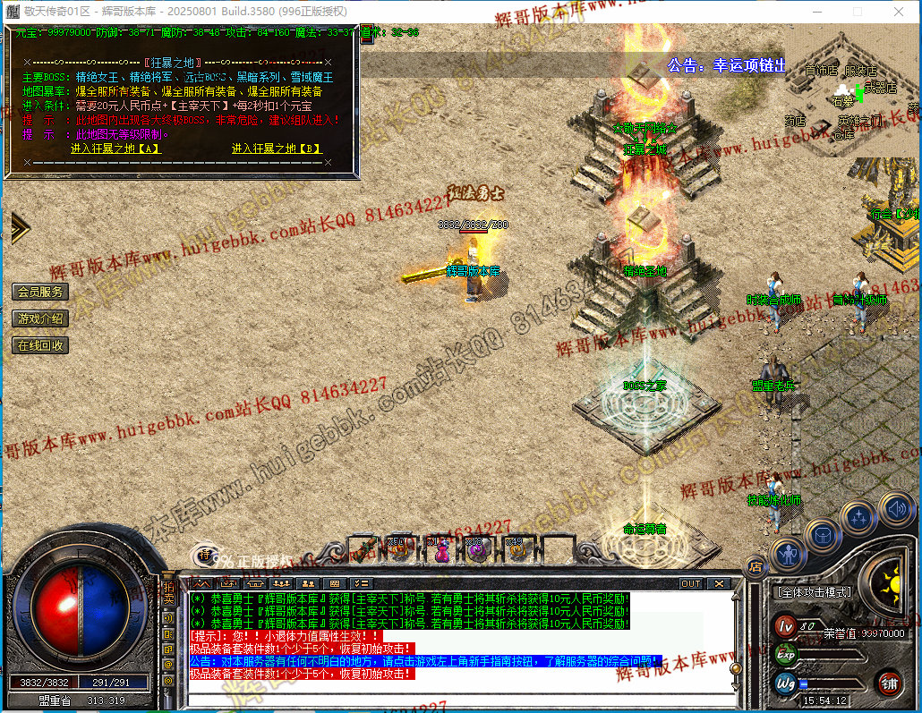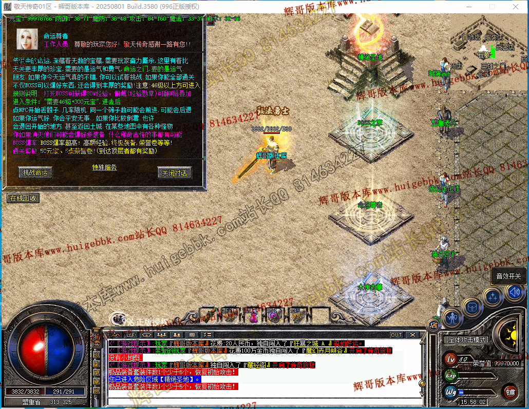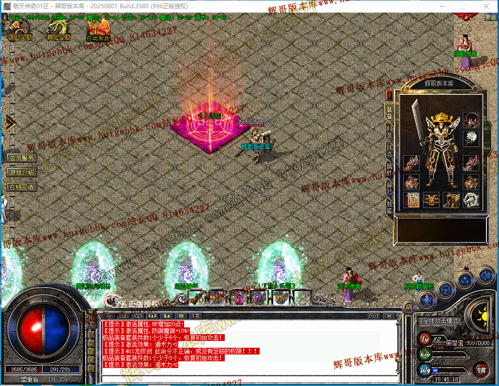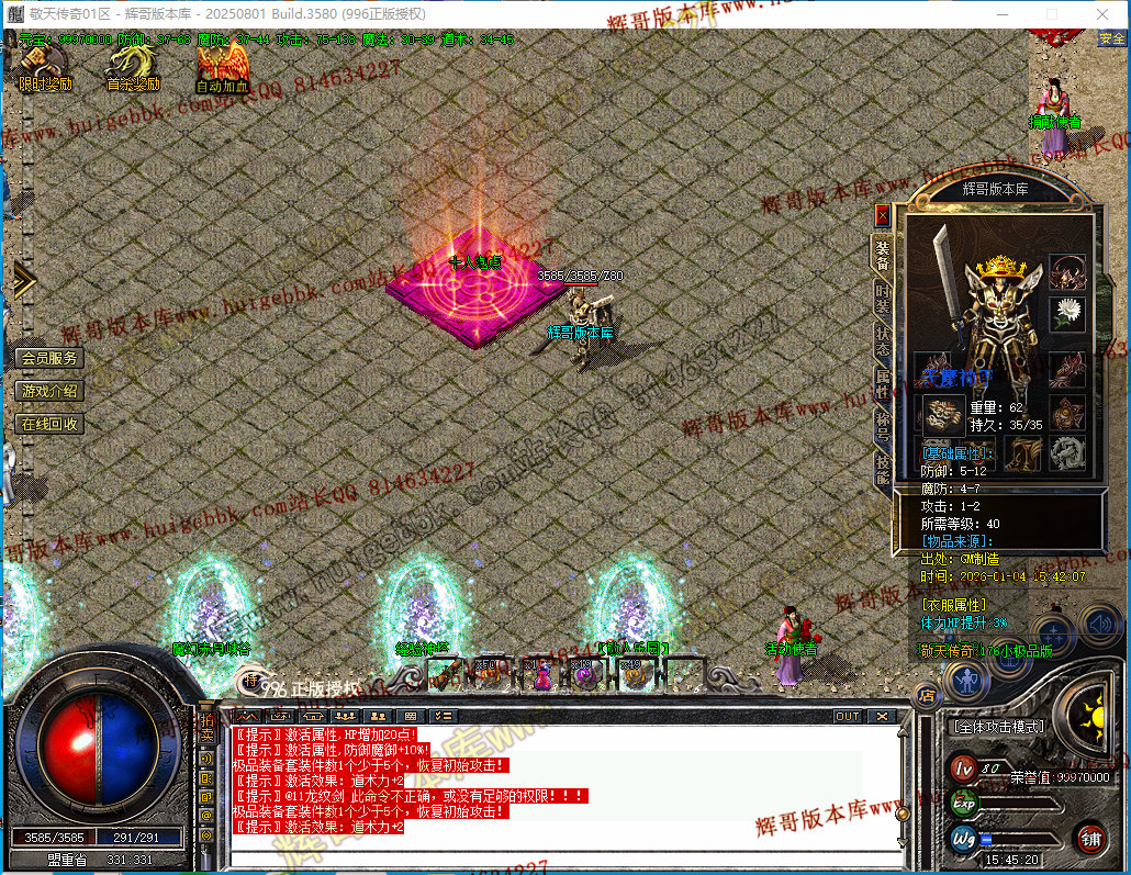 如果发现影响开区的大问题,可联系站长进行免费修复,细节问题自己处理不负责细节问题,