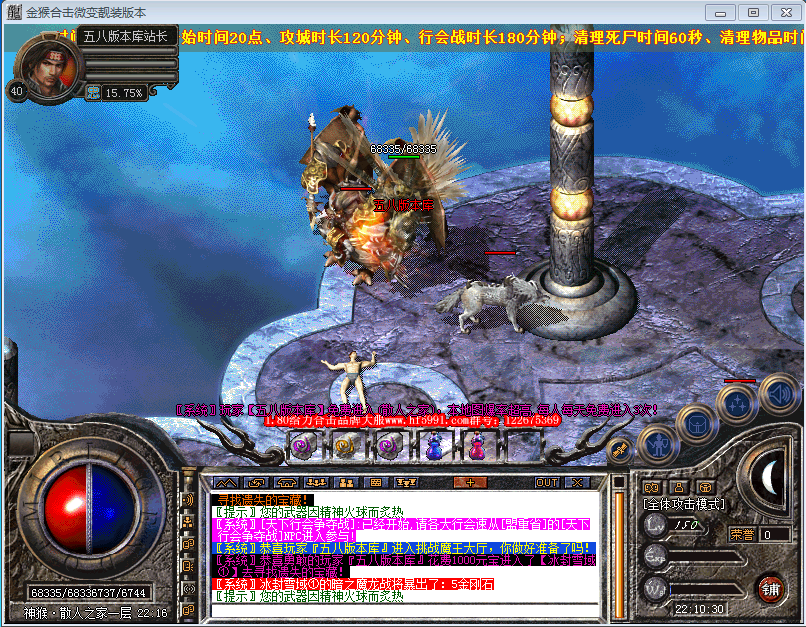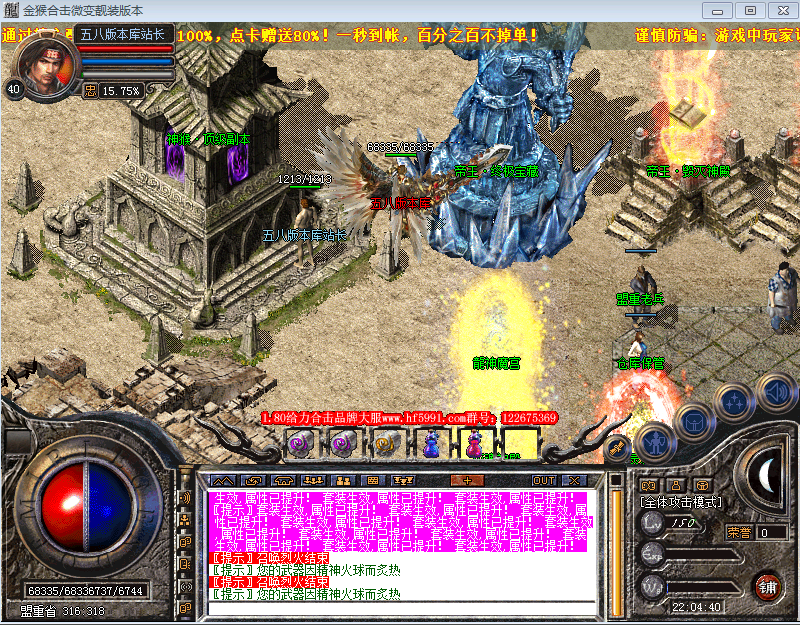 BLUE引擎-最新金猴合击微变靓装版本-神猴灭世副本-毁灭神殿-龍神魔宫-【版本介绍】:2016新版金猴合击 强势来袭 全面更新装备,爆率再气提升,超火爆人气!【开区时间】:每天开放五个新区:11:30 14:30 17:50 20:30 23:30 !【元宝比例】:1米=25000元宝-网银赠送100%-点卡赠送90%.默认赠送20%!【爆率介绍】:本服所有装备.全部靠打.无合成.散人玩家天堂.魔龙教主.爆所有装备!【攻沙奖励】:每天开放五个新区.开区后第三天合区攻城获胜行会奖励:1000W元宝!【爆率介绍】:本服所有装备.全部靠打.无合成.散人玩家天堂.魔龙教主.爆所有装备!【特色活动】:新副本-全民回馈-激情泡点-狂送豪礼-幸运之星-财富副本-怪物攻城!【版本介绍】:本服元宝超级好打,散人不花钱,可以打到顶级赞助,终极装备超级好爆!