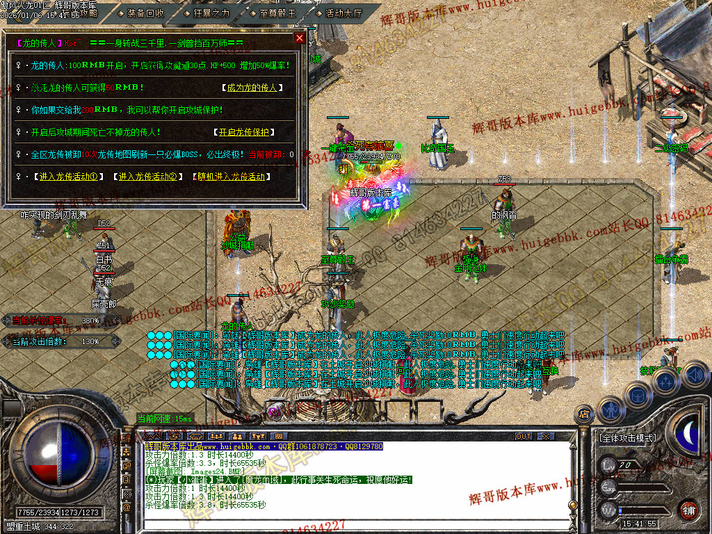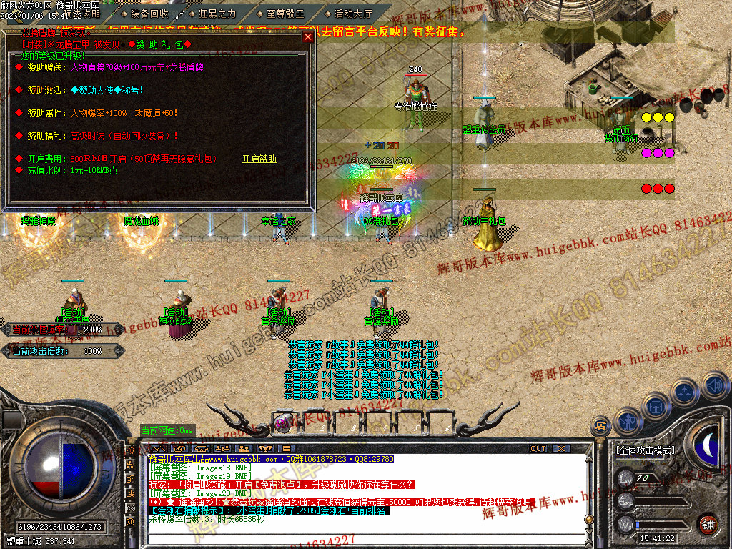 【开区时间】:每天开放多个新区,区区宣传,越合区人气越好,本服终极剑甲全爆,赞助可打